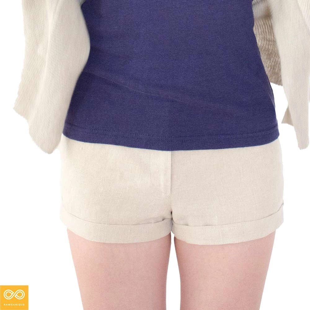 100% organically grown hemp shorts for women. Super breathable. Linen texture. Natural buttons. S-L.