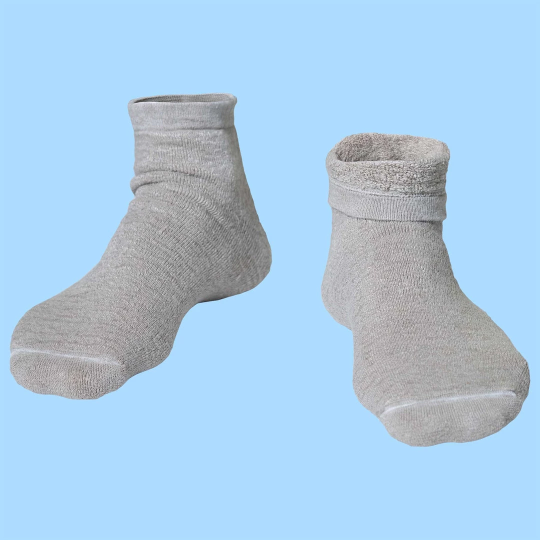 Rare organic French linen socks, featuring elastic-free flax linen terry knit. This is a popular choice for people who prefer non-confining socks to allow free circulation in the foot. Our wool-free, plastic-free, waste-free organic French flax linen terry socks are a special gift to vegans as well as eco-purists; but equally great for anyone who appreciates truly natural socks they can wear all day and all night to keep their feet cozy & dry.