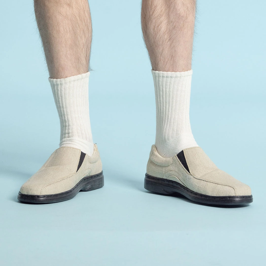 Hemp is a wonderful material for shoes: it is super breathable, wicks away moisture at a fast rate, is naturally UV- and mildew-resistant, and requires no breaking-in period. There is a piece of elastic on either side of the top rim to allow the foot to get into these comfortable all-day hemp shoes. Hemp uppers and hemp insole. Additional hemp insoles may be purchased for more of a cushion, or a more snug fit, or if you simply wish to have a spare one.
