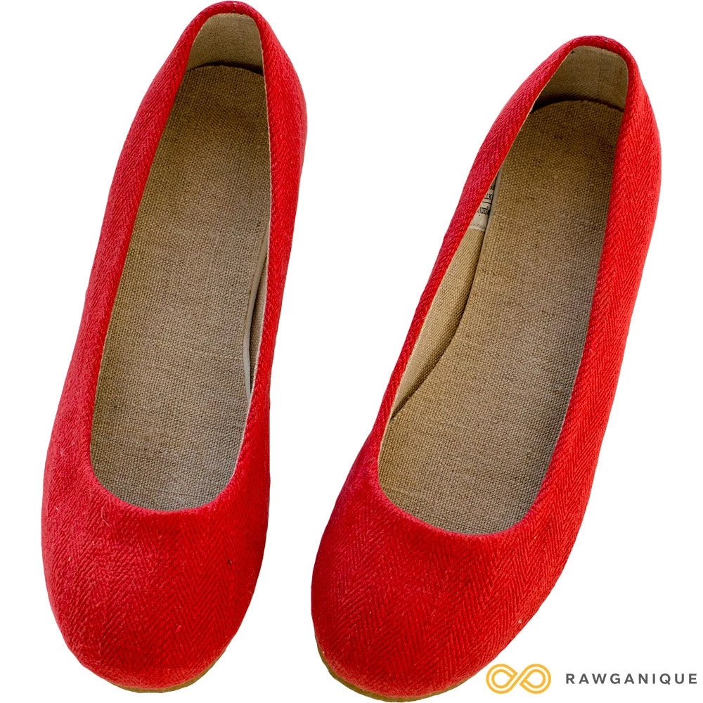 Handmade organic hemp ballet flat / Mary Janes, featuring hand-cut natural rubber soles. Sizes 5 (36) – 10 (41). Red, Teal, Natural, Beachstone, Black. Use our 100% natural wax to waterproof and stain-proof.