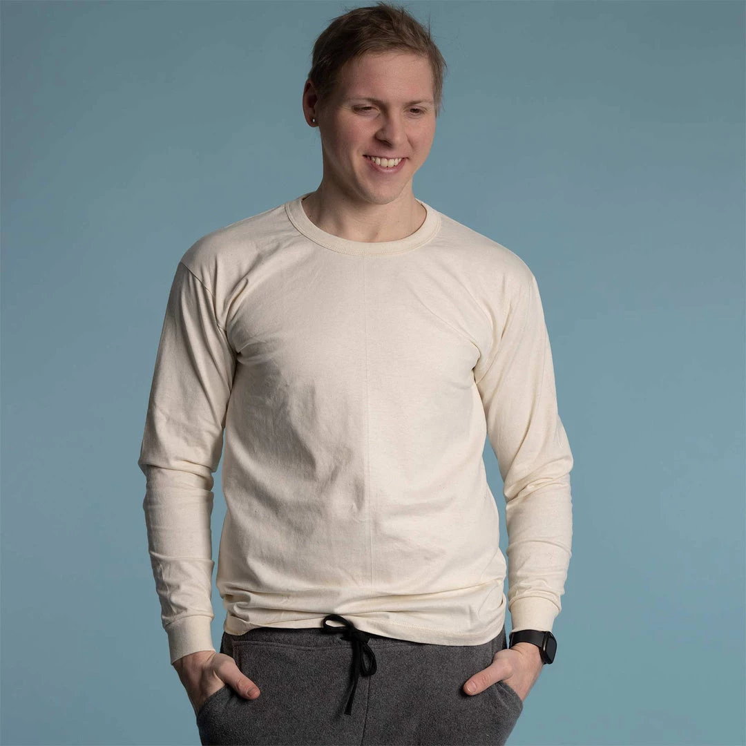 Our eco friendly, ethically made, and sustainable all natural organic cotton long-sleeve T-shirt is as pure as it gets.