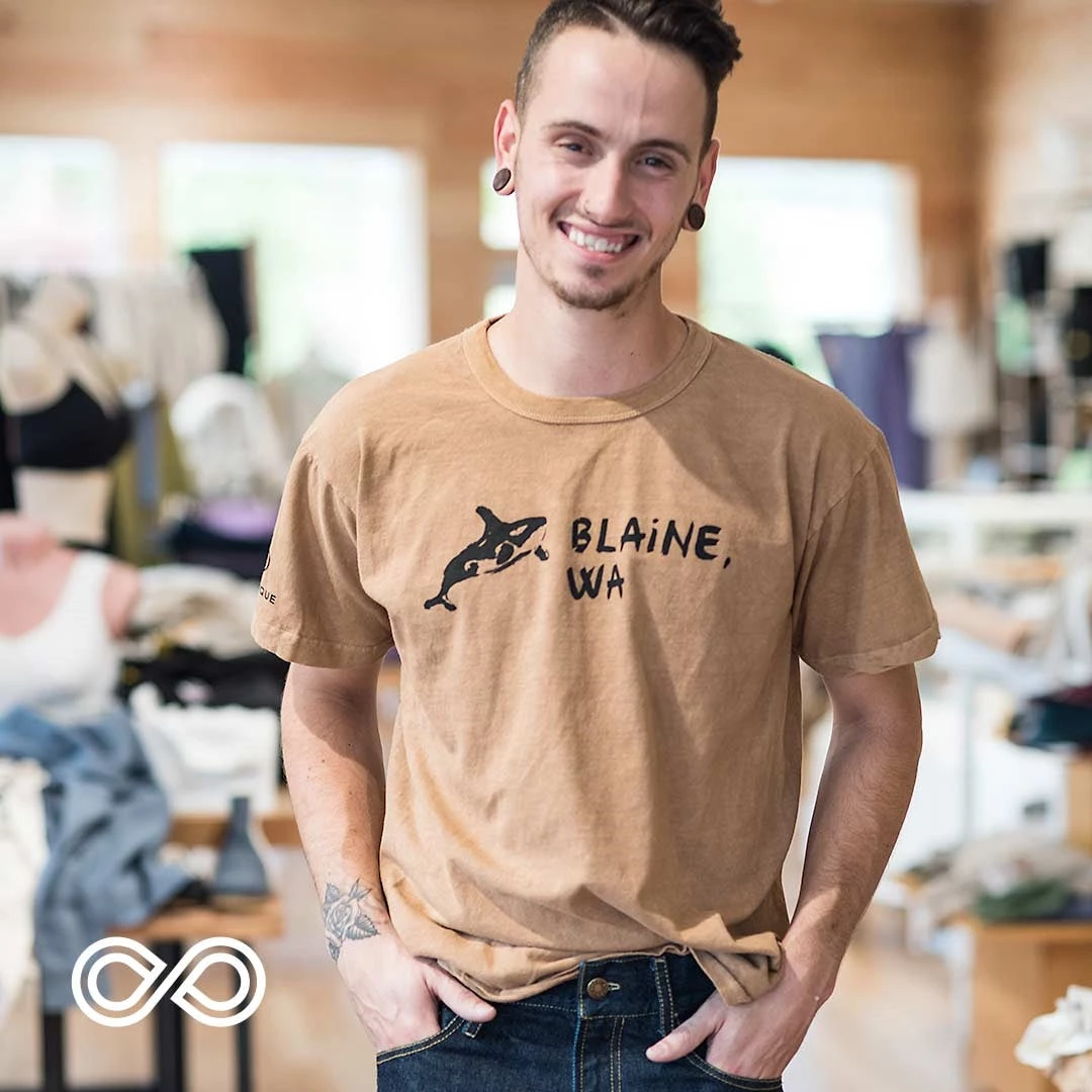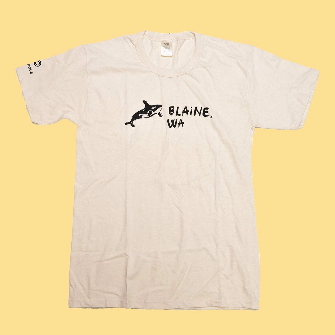 T-shirt Grown in USA, made in USA 100% organic cotton T-shirt, printed using non-toxic water-based eco ink with orca whale motif in two different variations depending on color. See sizing chart in Image Gallery. S and M run small.Â