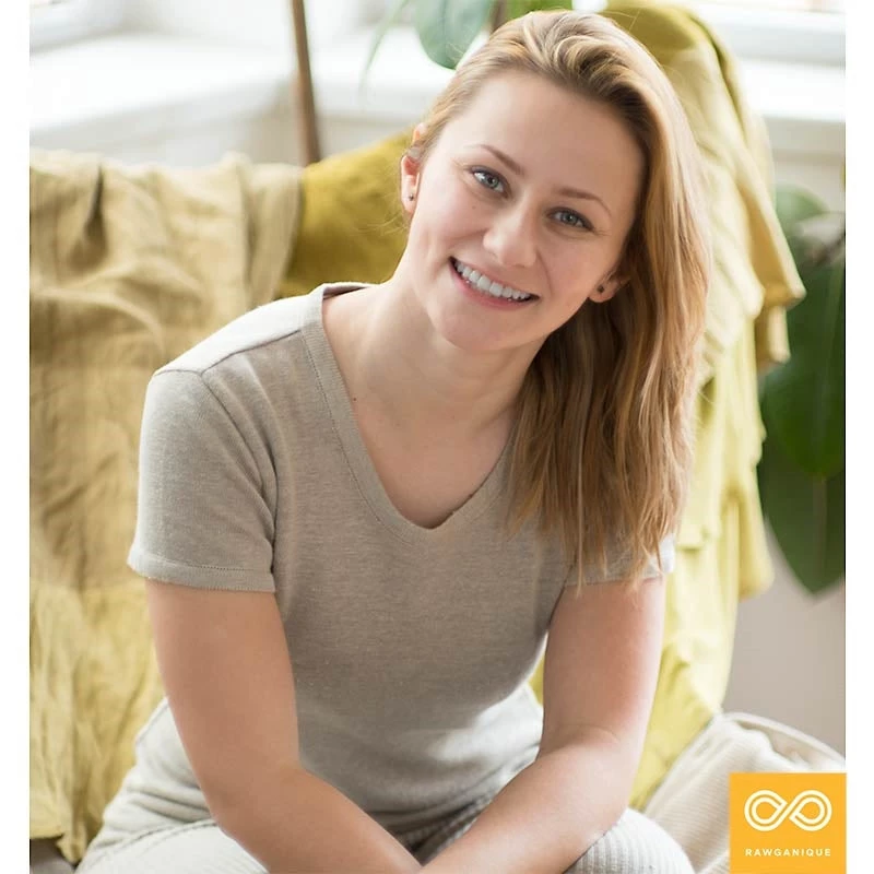 Rare heritage 100% organic linen knit T-shirt, no elastic, no spandex, no toxic chemicals. Silky, soft, pure. Very breathable. Savilla is 5’8″ and wears a medium in both the Lilith organic linen tee as well as the Grouse Mountain organic cotton fitness jammy shorts in the first photo.Â