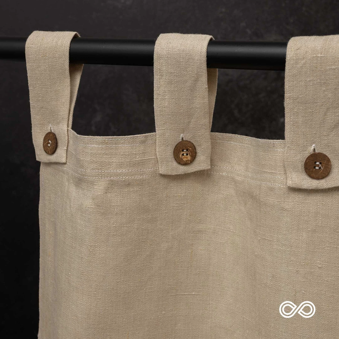 Our sustainable tabbed 100% Hemp Curtain (with openable coconut buttons) from organically grown European hemp for truly natural curtains and ethically made, sustainable draperies throughout your home.