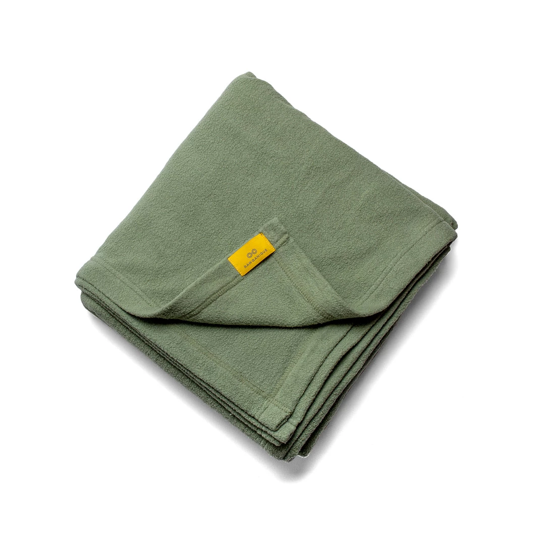 The Innsbruck 100% Certified Organic Fleece Blankets are made in-house at the Rawganique Atelier in Europe (sweatshop-free). There is no plastic or polyester or elastic in our pure organic cotton fleece blanket! The fabric weight is 450 GSM.