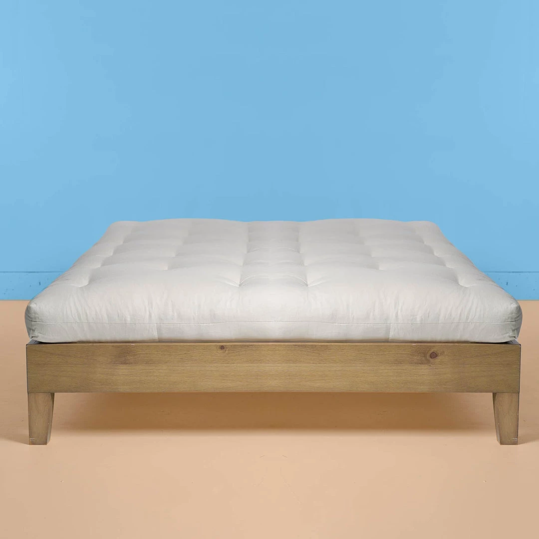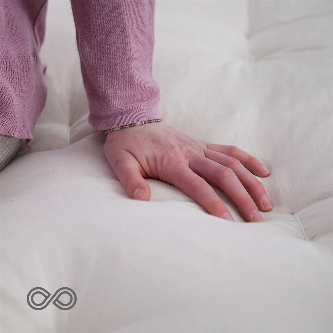 Care: Rotate the futon regularly for airing, drying, and cleaning as needed. Beat and air periodically to keep fresh. Spot clean with wet brush on the casing as needed. We recommend getting our zippered organic cotton barrier mattress cover to protect your organic futon investment.