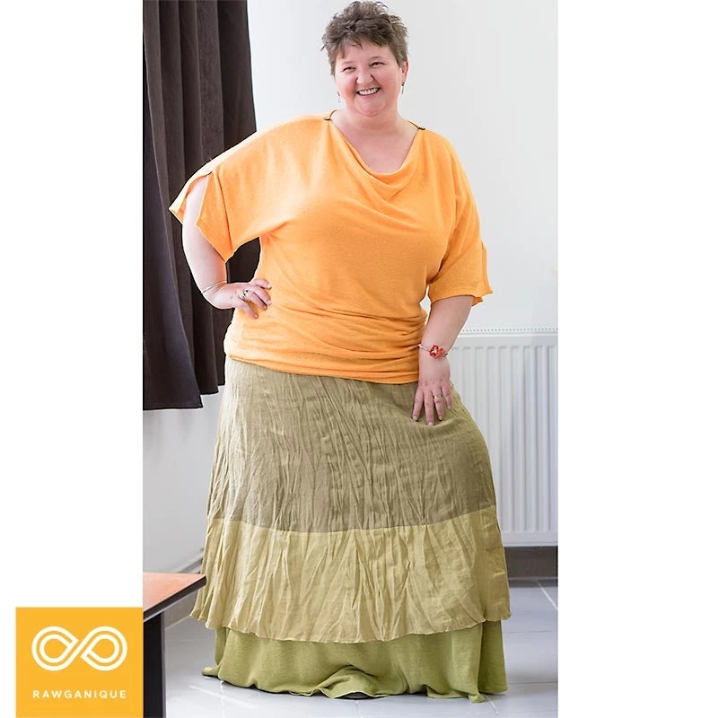 100% organic hemp skirt with multiple layers of organic hemp knit and woven fabrics for beautiful drape and flow. Attractive, comfortable, and chemical-free in a full range of sizes including plus sizes. Made at the Rawganique Atelier in Europe for true purity. Sweatshop-free.