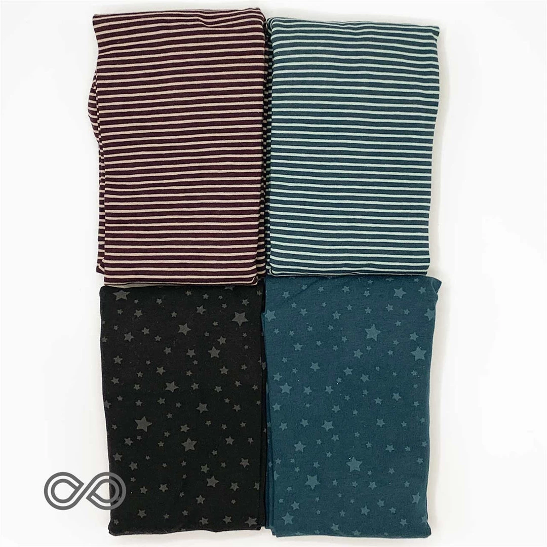 Choice of Stripes in Aubergine and Teal, and Starred Celestial Black and Teal.
