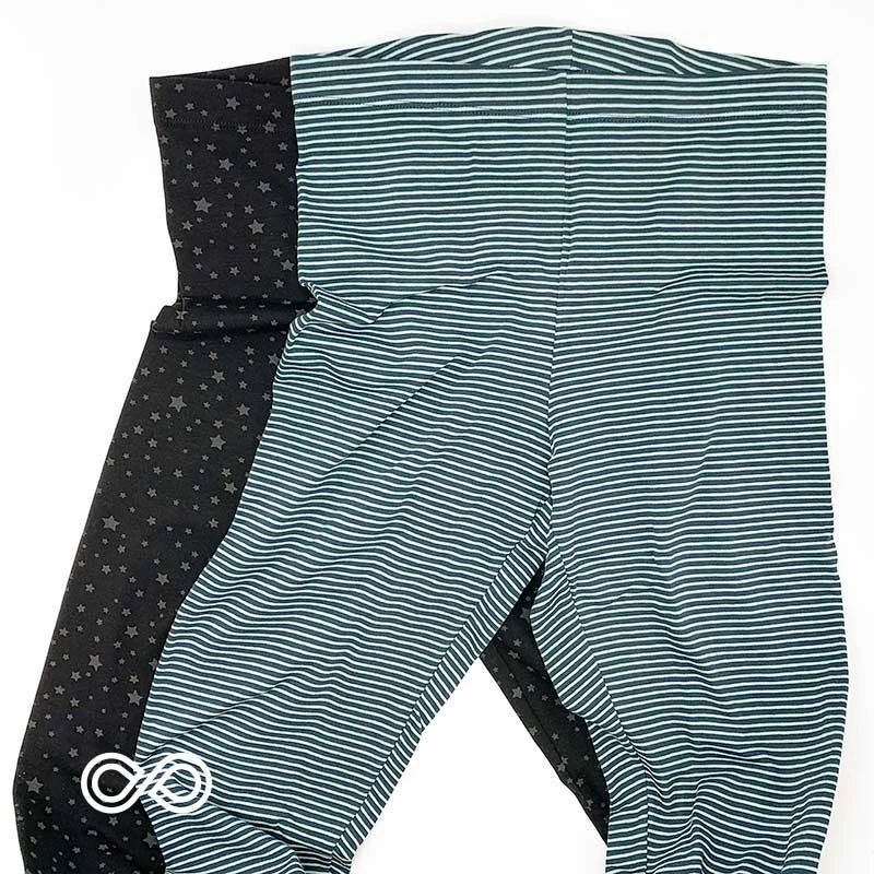 The organic cotton ankle leggings feature covered elastic waist band at the natural waist (can be folded down for a lower rise).
