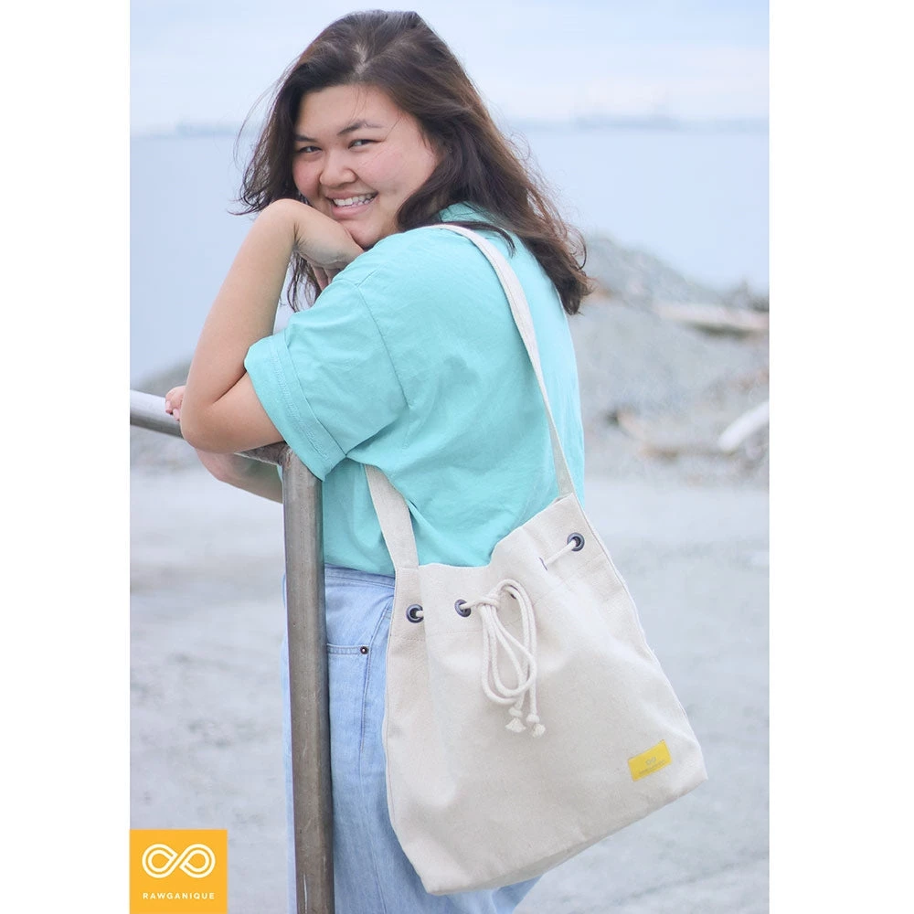 100% Hemp Purse. Cinch closure. Shoulder Straps. Handcrafted. Sweatshop-free. Made in Europe.