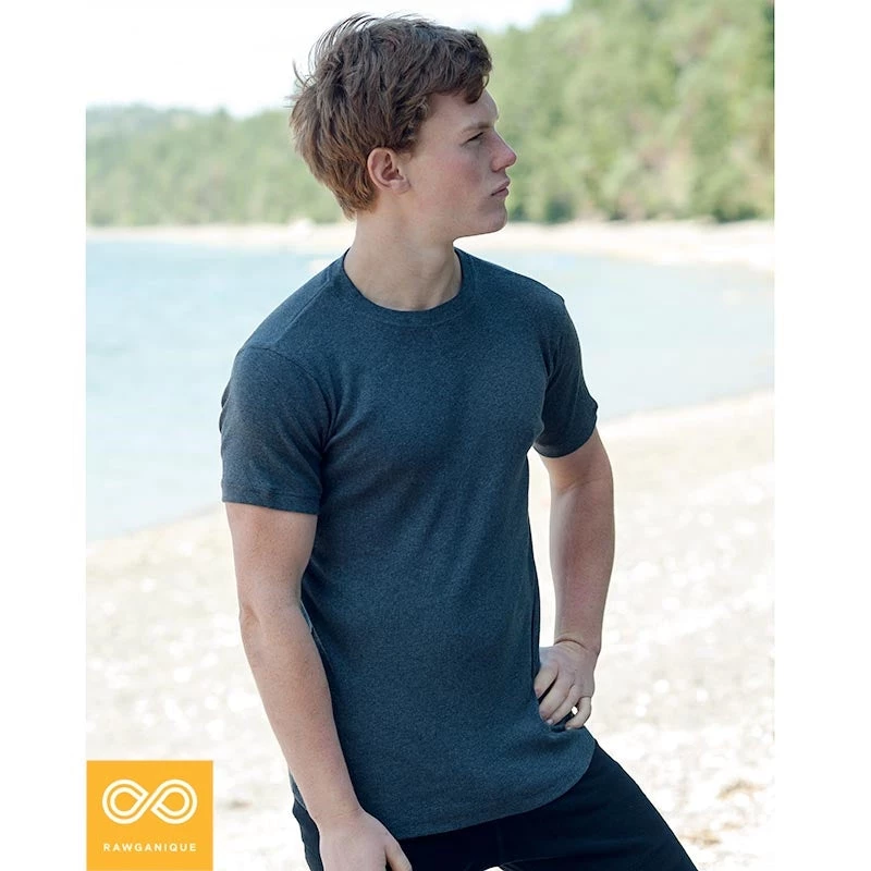 Chelsea 100% certified organic cotton ribbed knit T-shirt. Soft, cozy, stretchy. Made by Rawganique. Sweatshop-free. S – 3XL. Black, Spice, Charcoal, Sage.