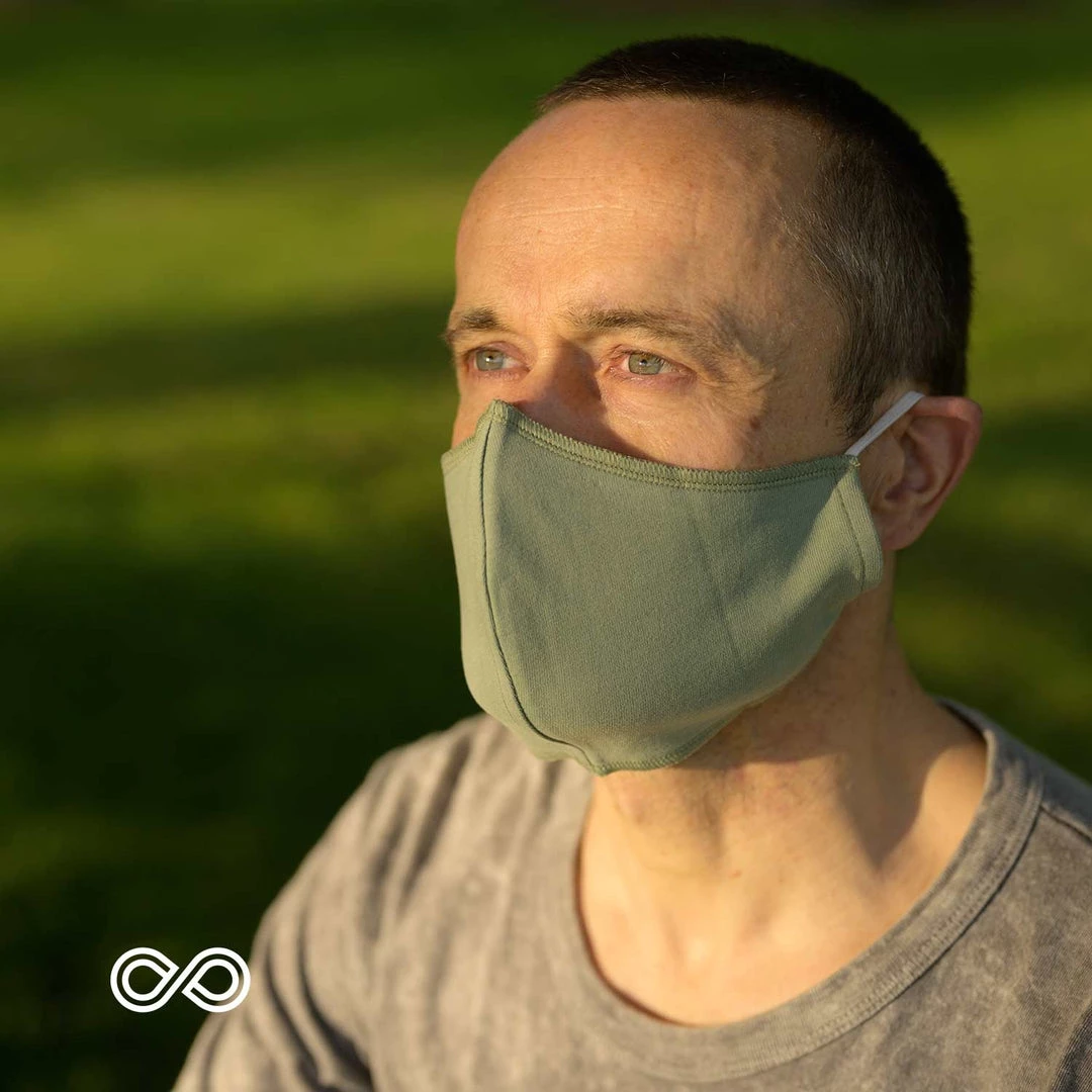 2 layers of 100% organic cotton jersey. Organic cotton threads. One elastic ear-loop on each side. With or without pocket for additional filters. Buy any 4+ masks or more & get 20% off.