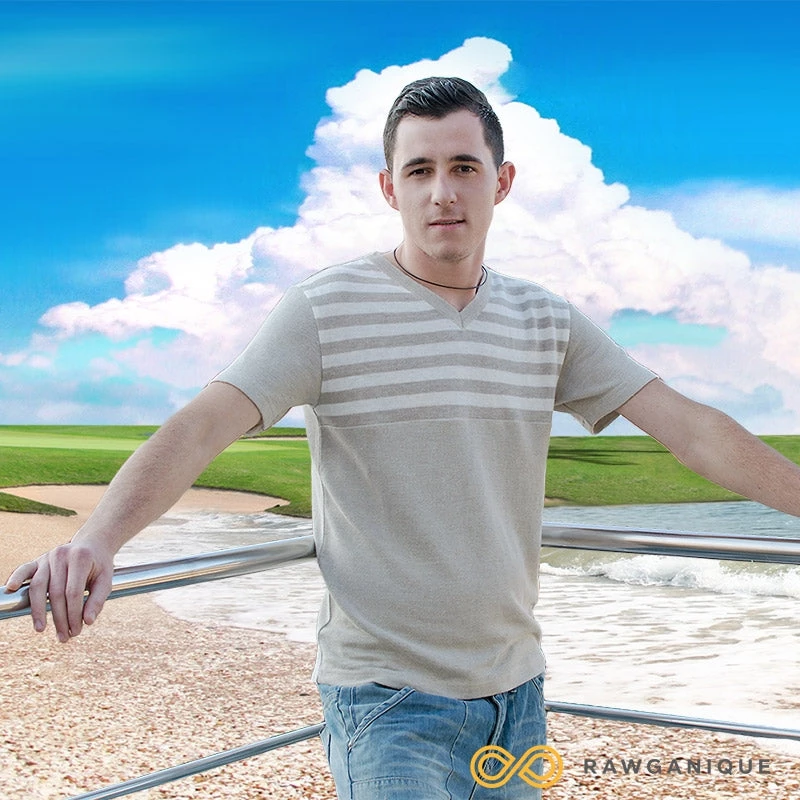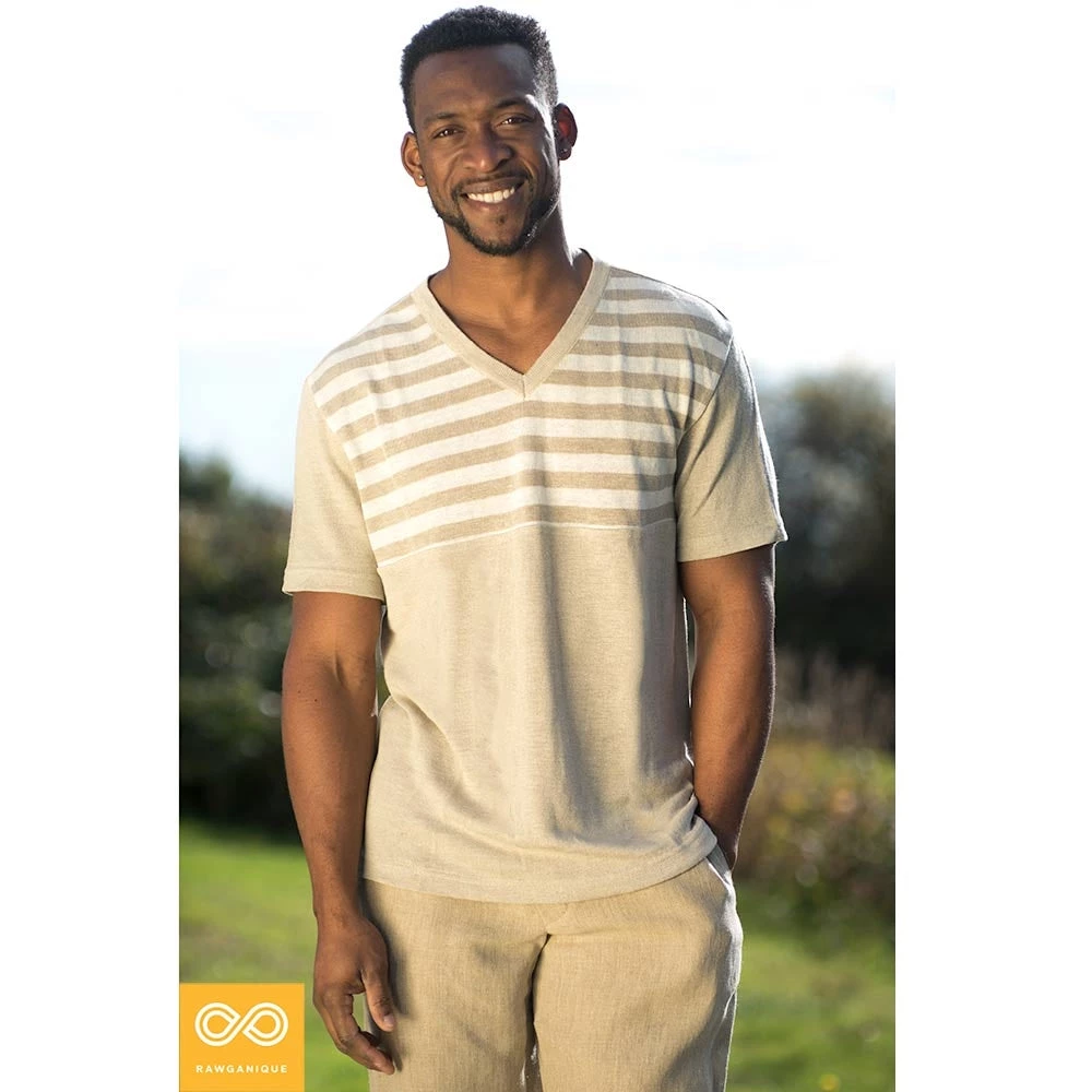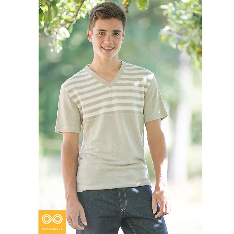 100% organic hemp knit V-neck T-shirt. Made by Rawganique from start to finish for true purity.