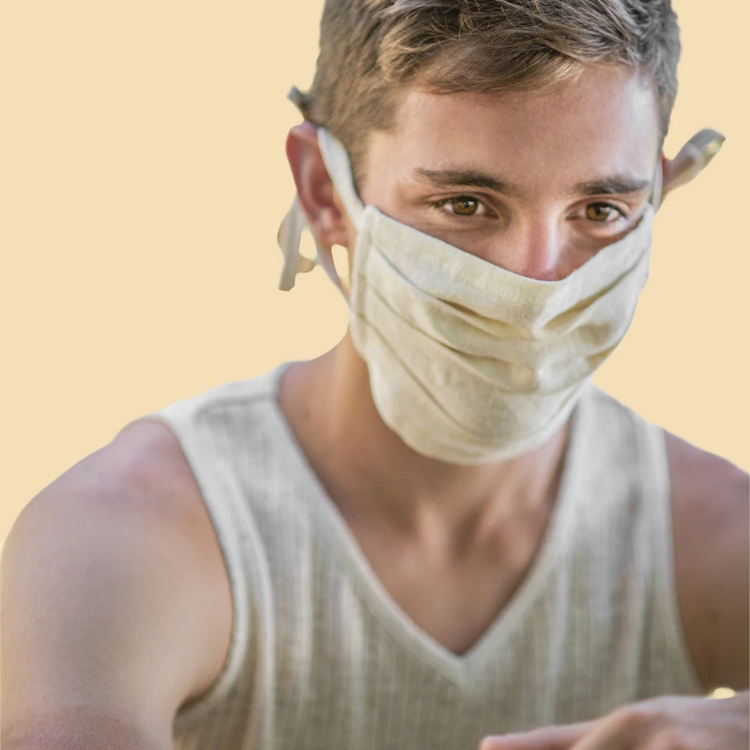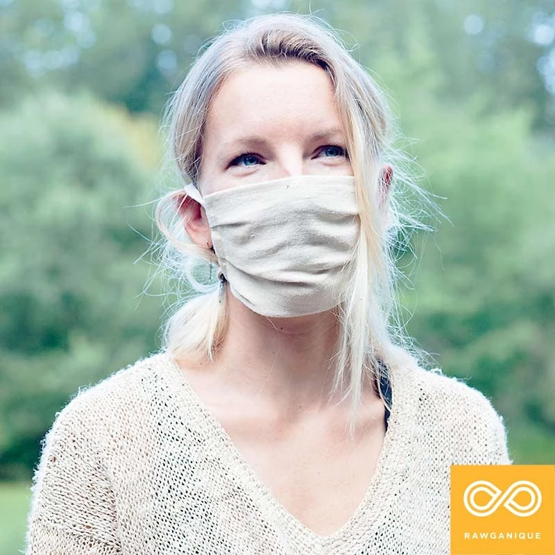 This hand-washable, reusable organic face mask can be fitted behind the ears or tied behind the head. It’s made from a breathable 100% hemp fabric & sewn using organic cotton threads. This all-natural hypoallergenic face mask is completely chemical-free. No VOC, no bleach, no dye, no PVC, no plastic, no elastic, no Velcro, no GMO, no pesticides, no dioxin, no formaldehyde, no forever chemicals such as PFAS. Only natural fiber. As it should be, for your & our all safety.