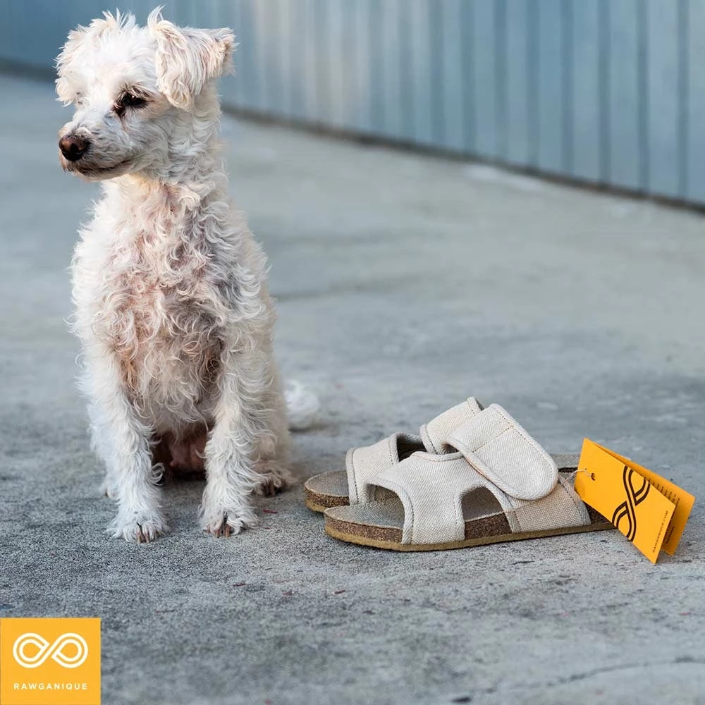 A unique offering, our eco-friendly, sustainably made organic hemp sandals feature hemp uppers & hemp and cork footbed, plus hand-cut natural rubber soles. Adjustable & comfortable.