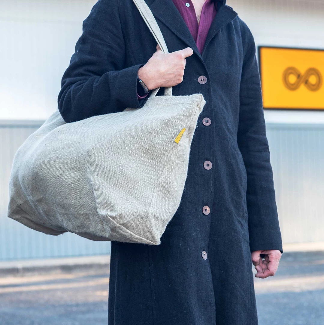 100% organically grown hemp shopping / laundry / travel bag. Zippered closure. Huge capacity for all your shopping, laundry, and travel needs. If you machine wash the bag, it will shrink so best to spray wash with warmish water and air dry. Can use our 100% natural wax to waterproof and stain-proof. 21.5” x 14” x 6.5”