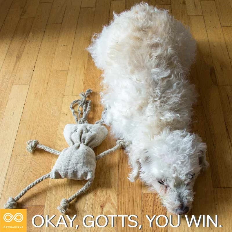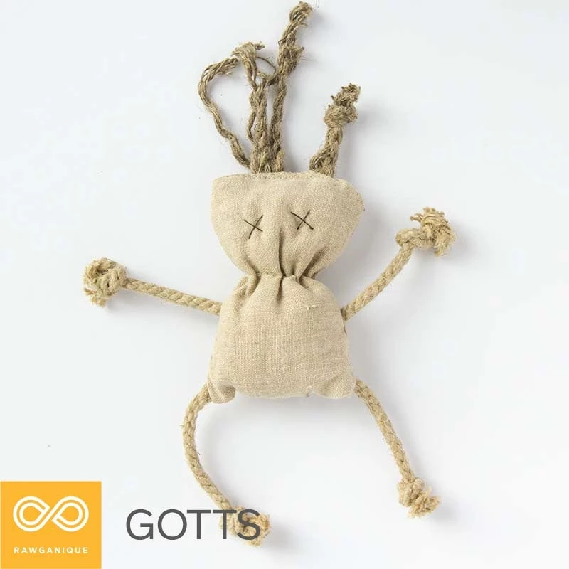 Our Gotts Hemp Pet Toy Doll is completely safe for dogs, cats, kids, humans, and the planet. Gotts Hemp Toy Doll is unique: each one is one-of-a-kind handmade right here at the Rawganique Workshop on Denman Island by longtime artisans on the Rawganique Team.