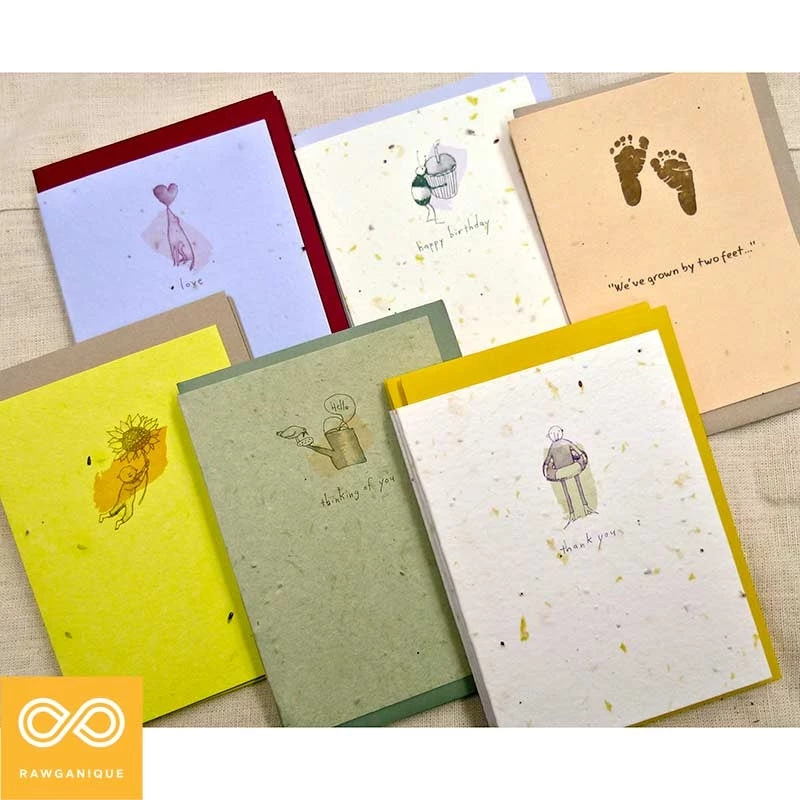 Handmade in the USA. 100% Recycled ingredients – using no chemicals, dyes or additives in making this sustainable greeting card. With each card comes a matching color envelope.
