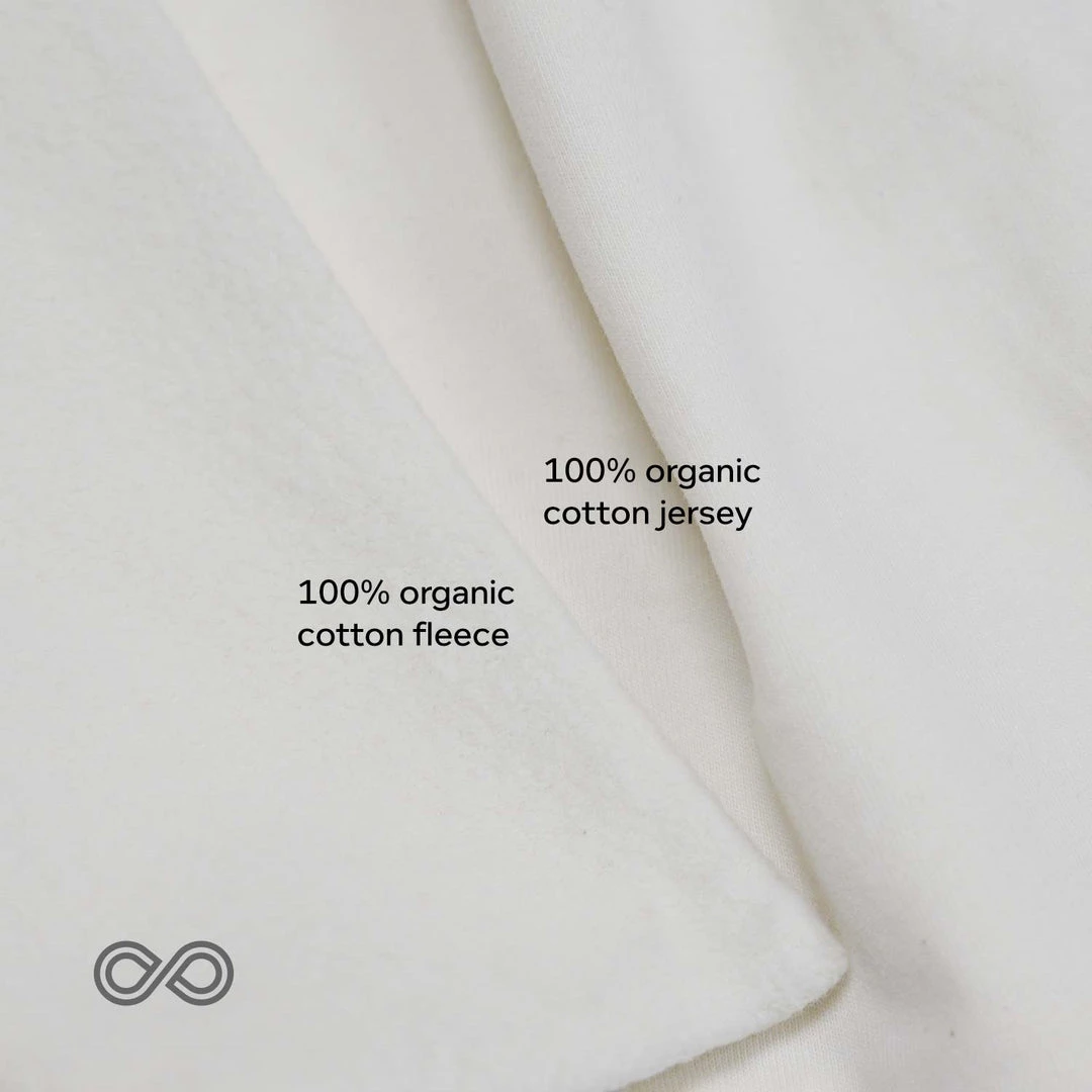 Fabric: 100% organic cotton two-sided brushed fleece & Jersey knit