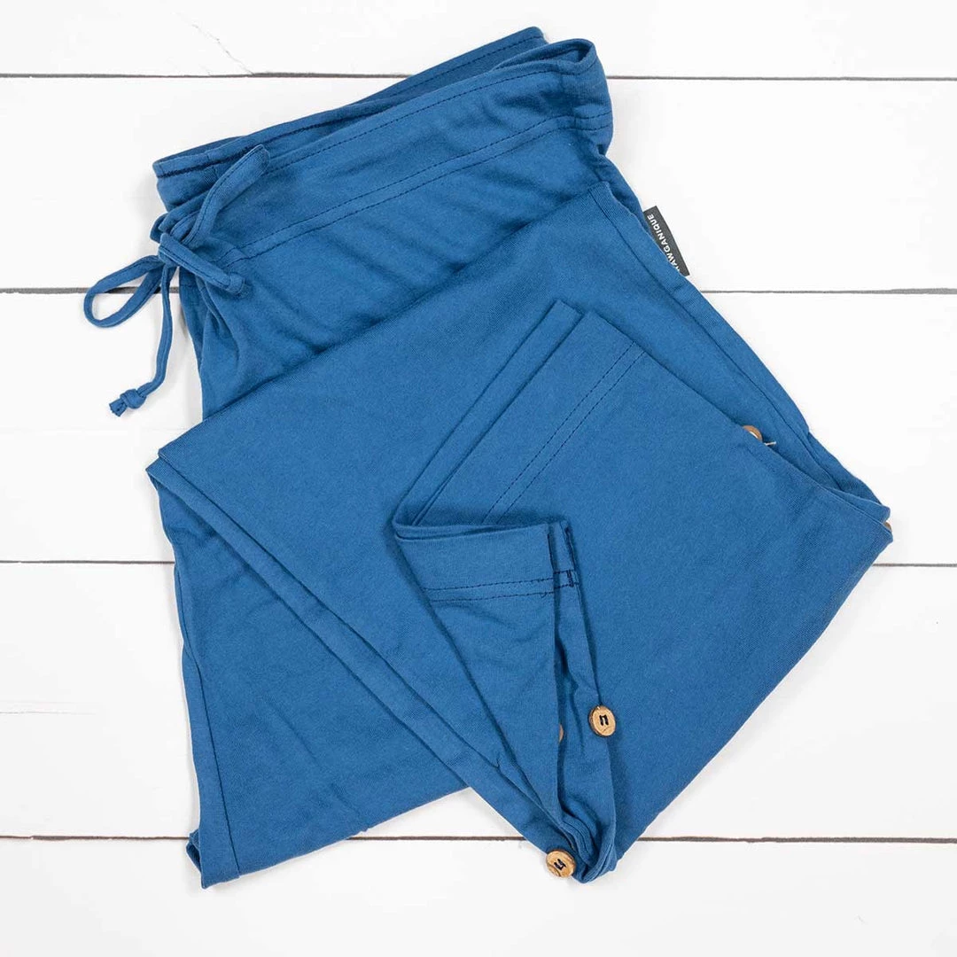 Our favorite unisex organic cotton jersey jammy pants, made from an ultra soft 100% organic Prima cotton jersey for smooth and silky all-day comfort. These organic jammies are elastic-free, and designed with an ingenious adjustability in mind so you can button up to the length that suits you. Wear the Interlaken Organic Cotton Jersey Jammy Bottoms as house pants, jammies, or for yoga and Tai Chi; they are perfect for all these things and more.