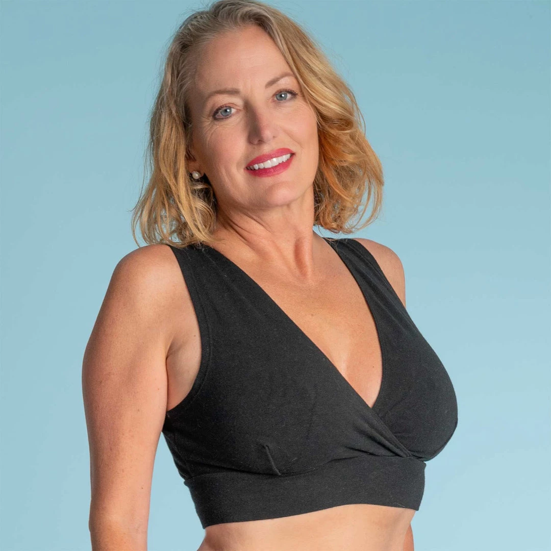 Style: Organic cotton crossover nursing bra for plus cup sizes.