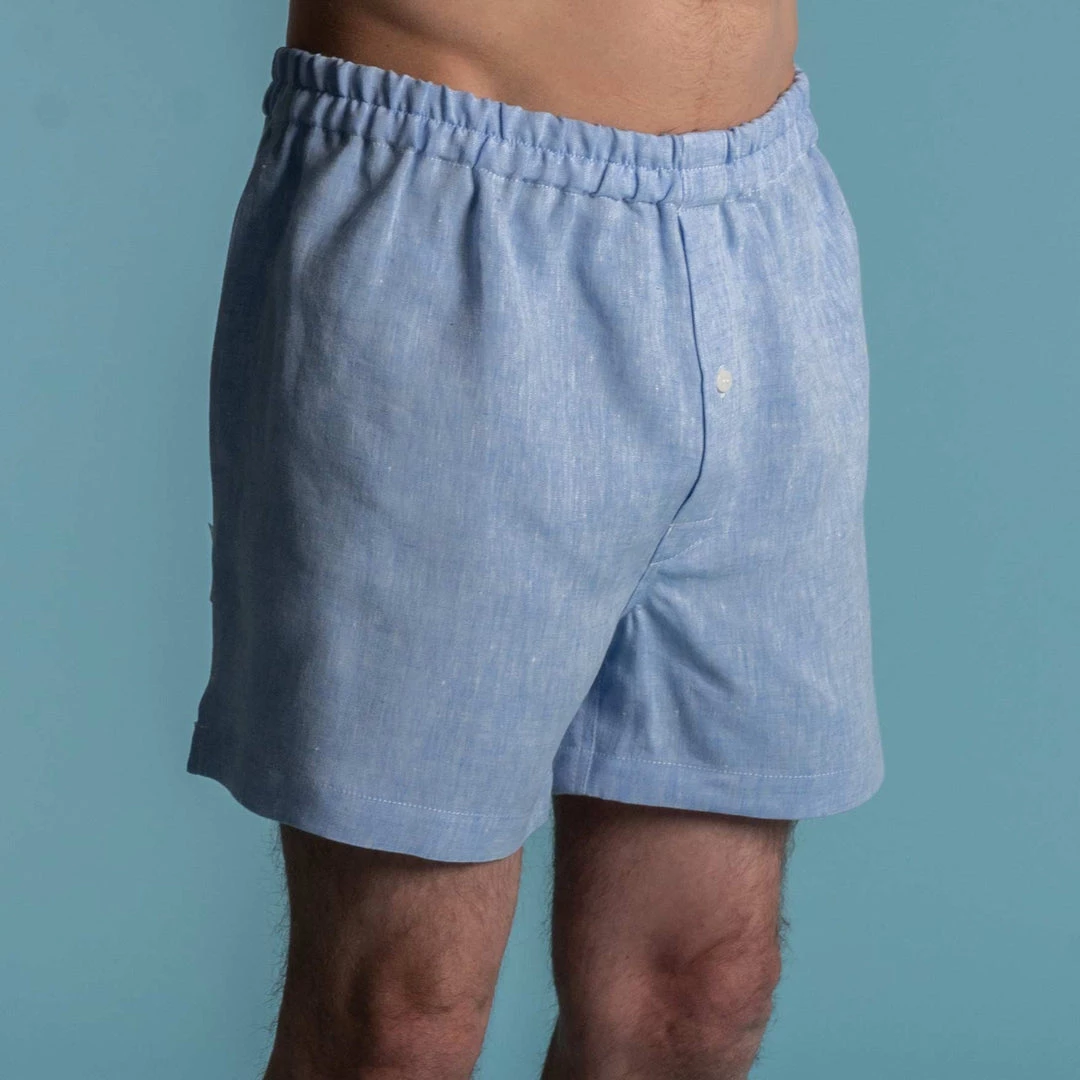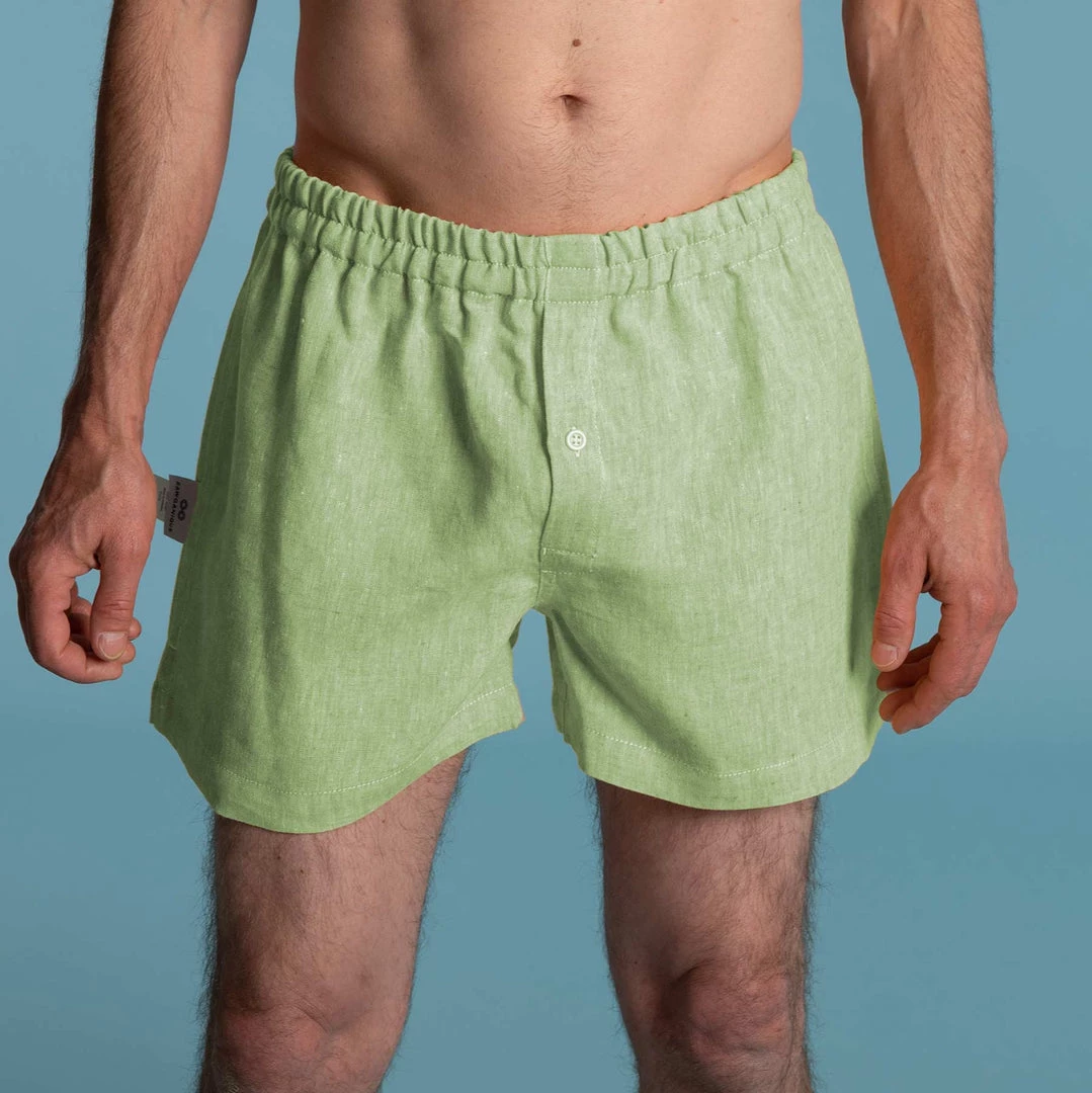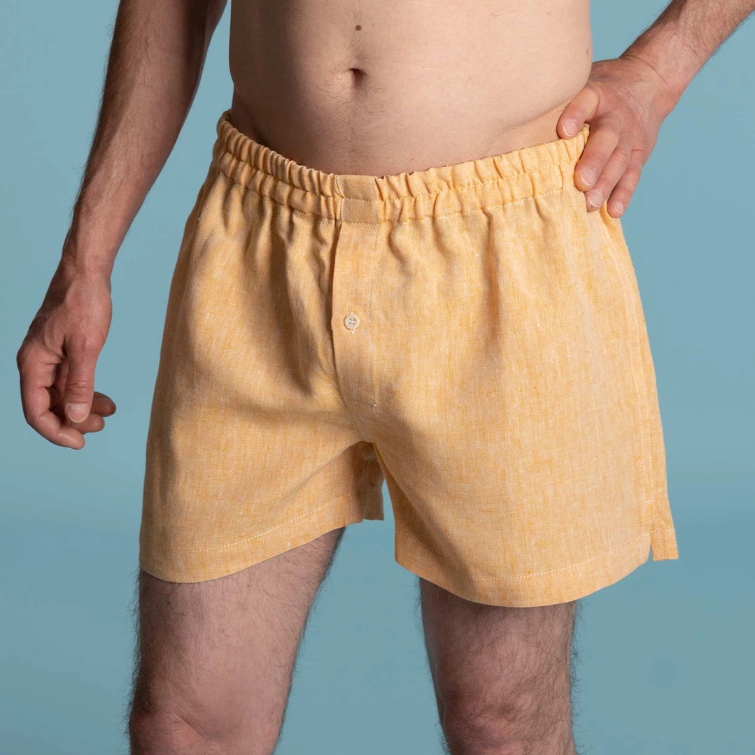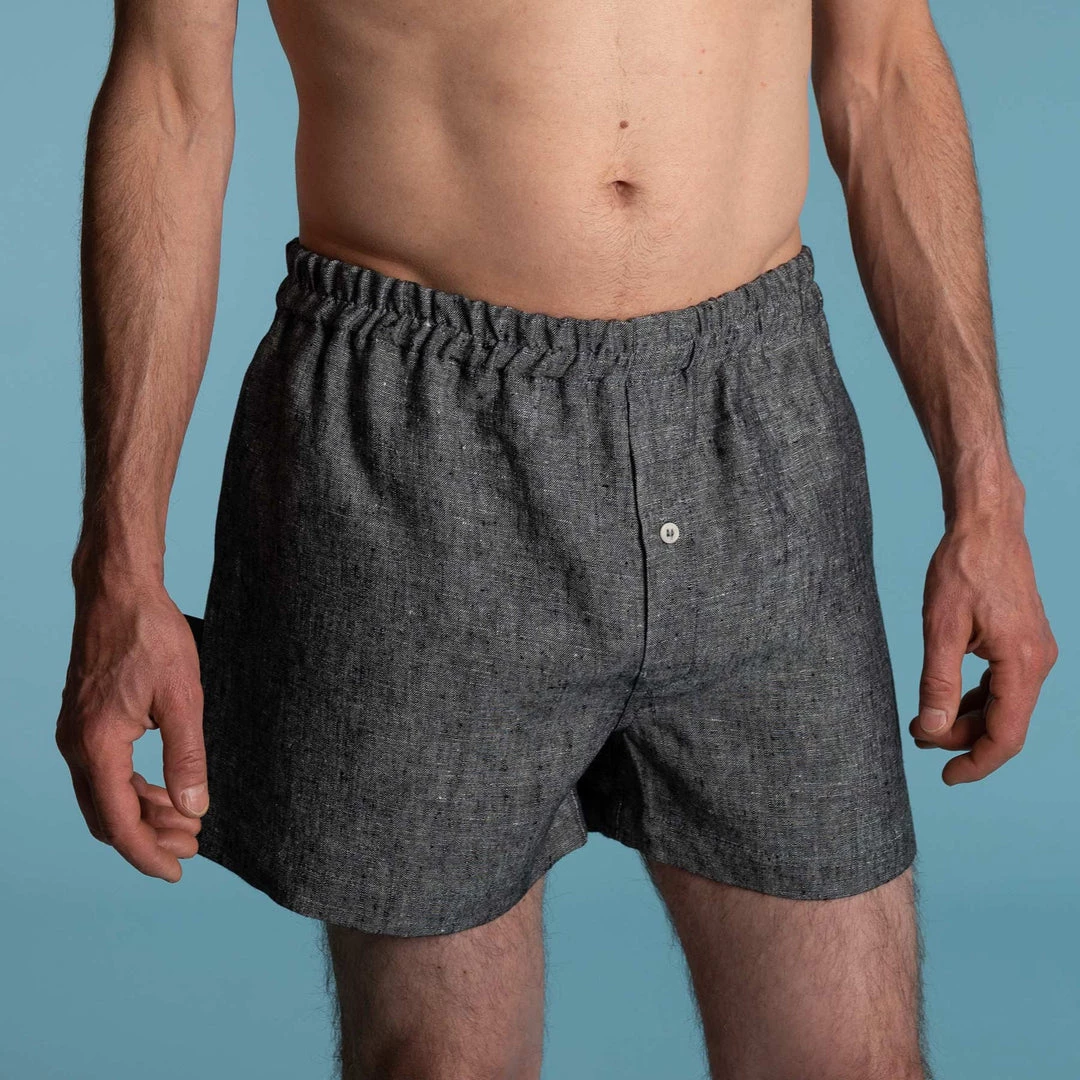 Style: Classic hemp woven boxer shorts with buttoned fly access