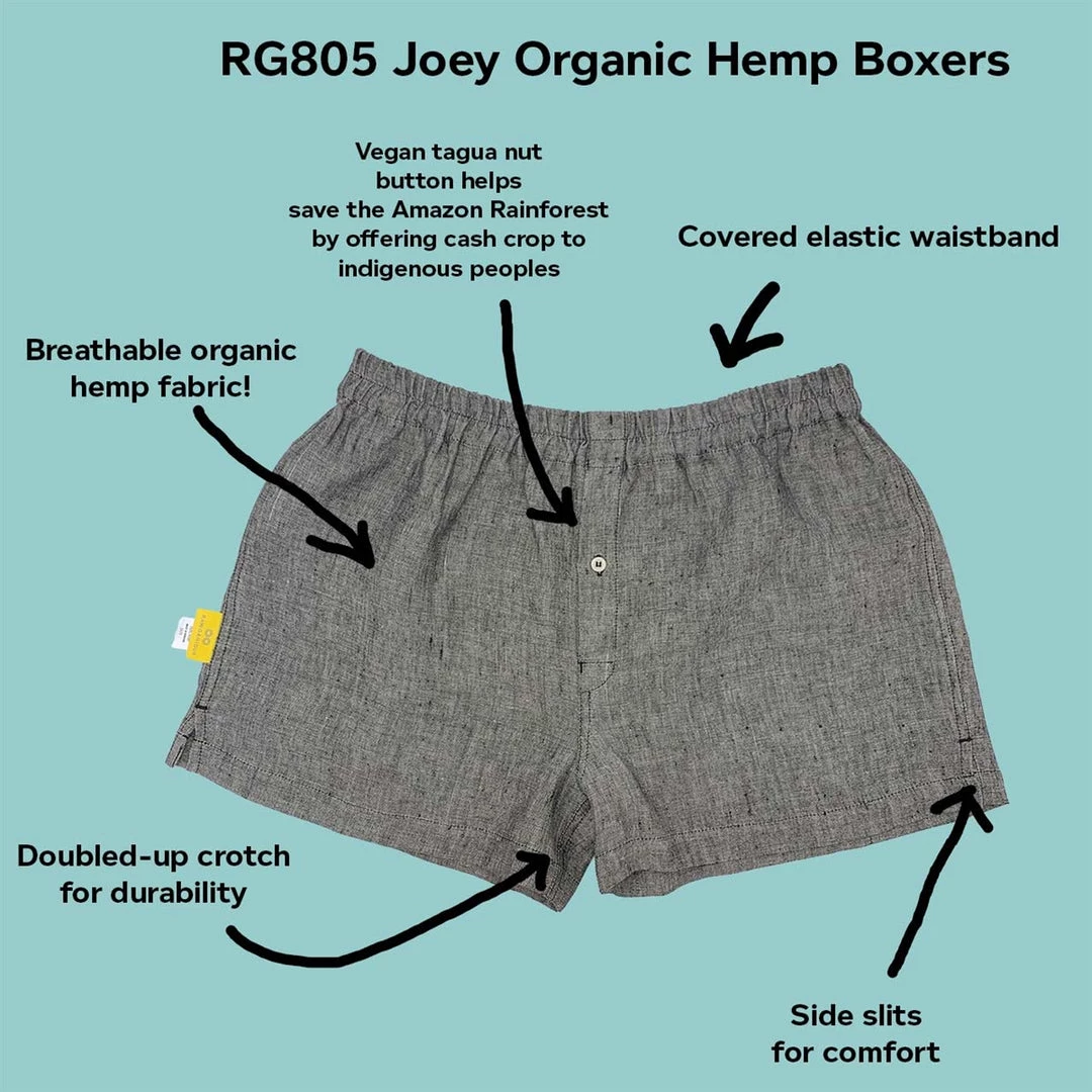 Eco-friendly & ethically made 100% organic hemp boxers, featuring a doubled-up crotch for durability & side slits for ease of movement. These breathable hemp boxers are made from 100% organically grown European hemp woven fabric that is soft and cozy. Our chemical-free hemp boxers feature a covered elastic waistband. Sporting a tagua nut-button fly closure, our hemp boxer shorts are really comfortable to wear all day & all night long.