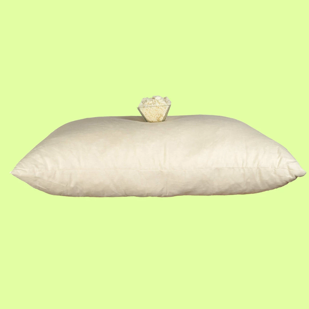 Handmade in USA. Stays resilient over a long period of time. Hypoallergenic. Great for dust & mold allergies. Machine washable. Optional zipper to access filling. Durable, great value over lifetime. Sizes: Travel, Standard, Queen, King. Option of zipper so you can adjust fill to your liking.