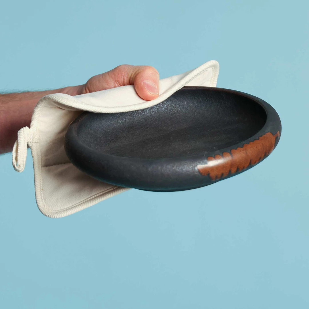 The Bunyan Organic Cotton Oven Mitt is made from start to finish at the Rawganique Atelier from premium 100% organic cotton fibers.