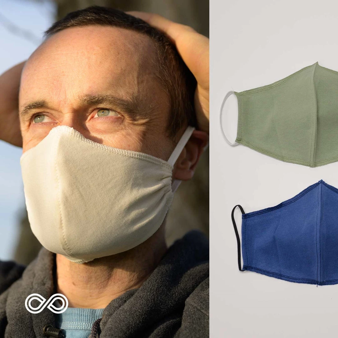 This is our no-frills organic cotton face mask that’s easy to put on and take off, thanks to the elastic ear loops. It’s one layer of 100% organic cotton jersey that’s tightly knitted and soft. Many customers who work in grocery stores or heathcare facing the public double them up for more protection or use them as an outside protect mask layer on top of our other organic masks. Some insert one of our organic hankies or lint cloths to adad additional layers. The Lennox organic cotton masks work fine on their own in most other cases that don’t need extra protection.