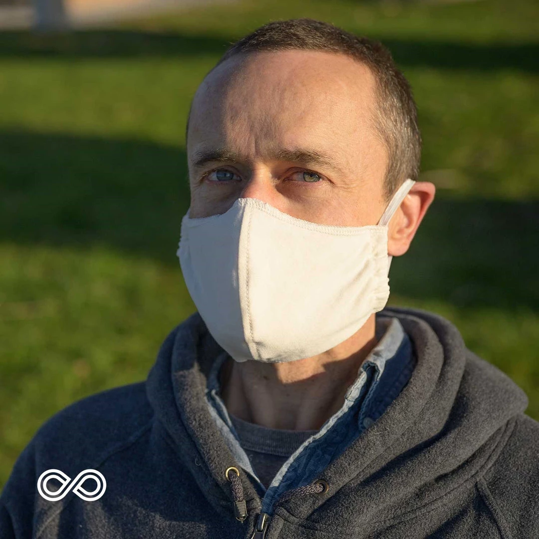 Made from our special 100% Organic Prima cotton jersey, the Lennox organic cotton face mouth mask is the result of overwhelming request from customers who face the public – grocery store workers, restaurant delivery service workers, and healthcare workers who need an organic face covering that’s easy to put on and take off with simple elastic ear-loops. Why organic? Because they want a pure chemical-free organic fabric against the face and skin and nose instead of chemically treated plastic or PVC or polyester or silicone.