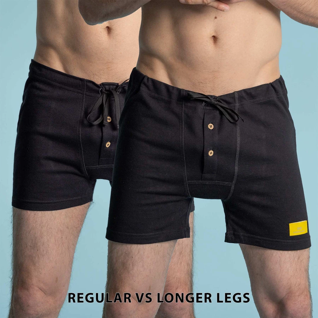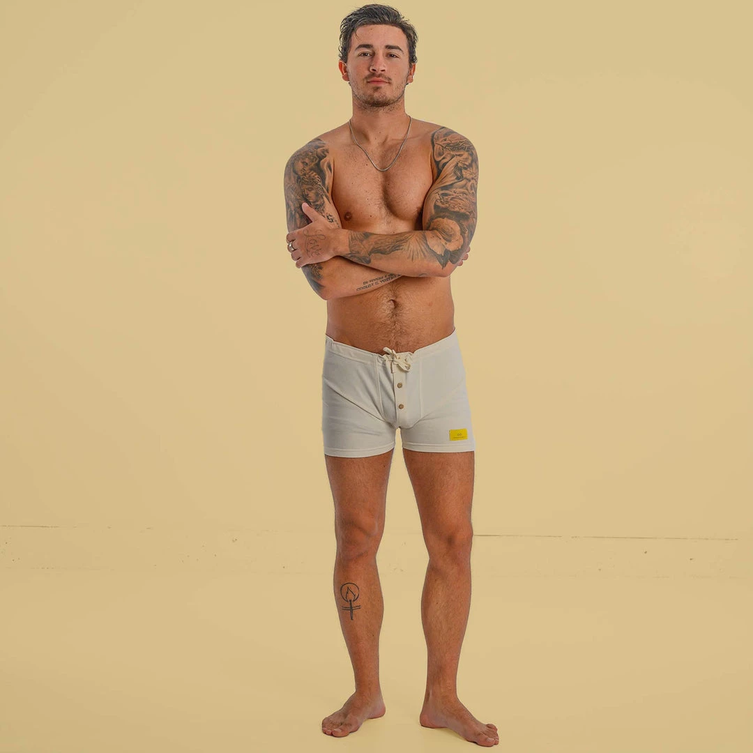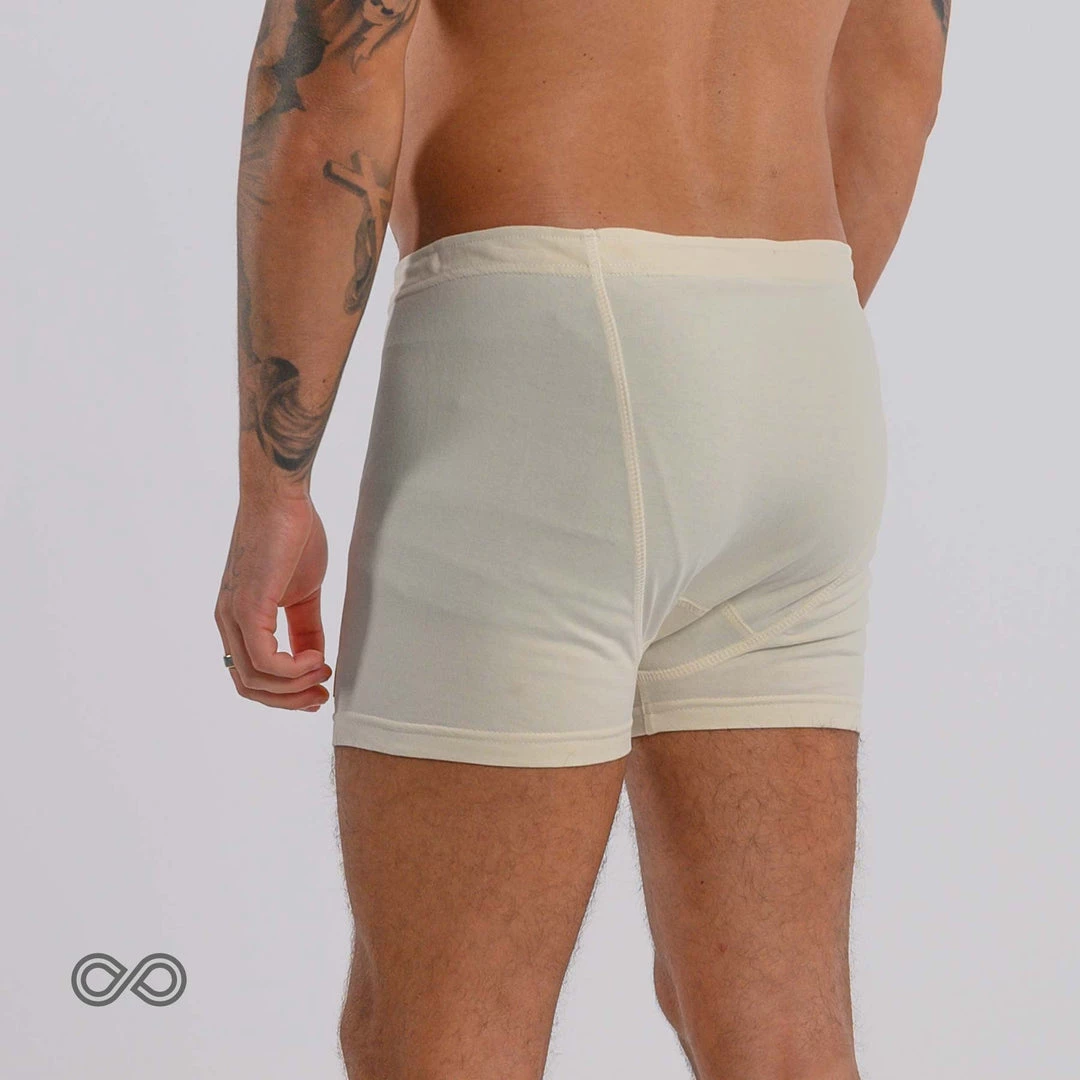 Super soft & pure 100% organtic Prima cotton. Elastic-free. Organic cotton threads. An absolute customer favorite since 1997. 100% natural plastic-free vegan tagua nut or coconut buttons. Gusset Crotch. S – 3XL. Most people can size down because without elastic compression, the waist is quite roomy.