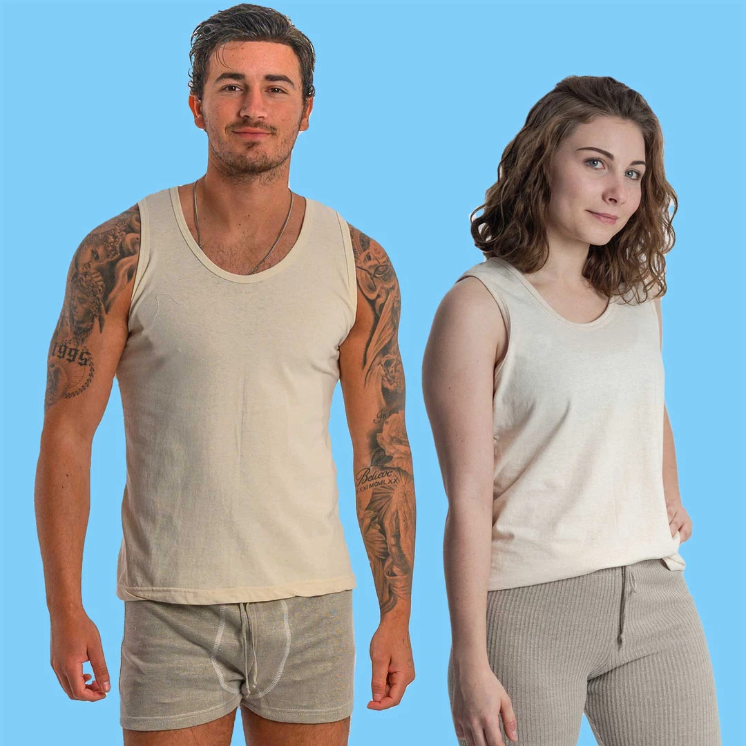 The Rawganique New Orleans 100% Organic Cotton Tank Top is grown and made with pride in the USA from a heritage strain of American organic cotton yarns. We use only the purest untreated, unbleached, and undyed certified organic cotton jersey that’s soft and cozy to make this eco-friendly, sustainable, and ethical organic cotton tank top that is great on both men and women. Medium T-shirt weight.