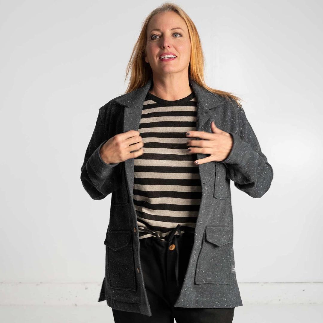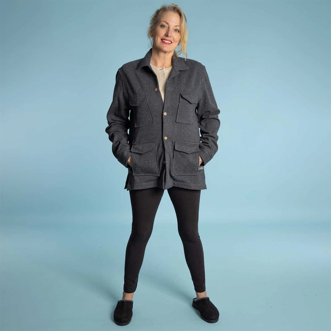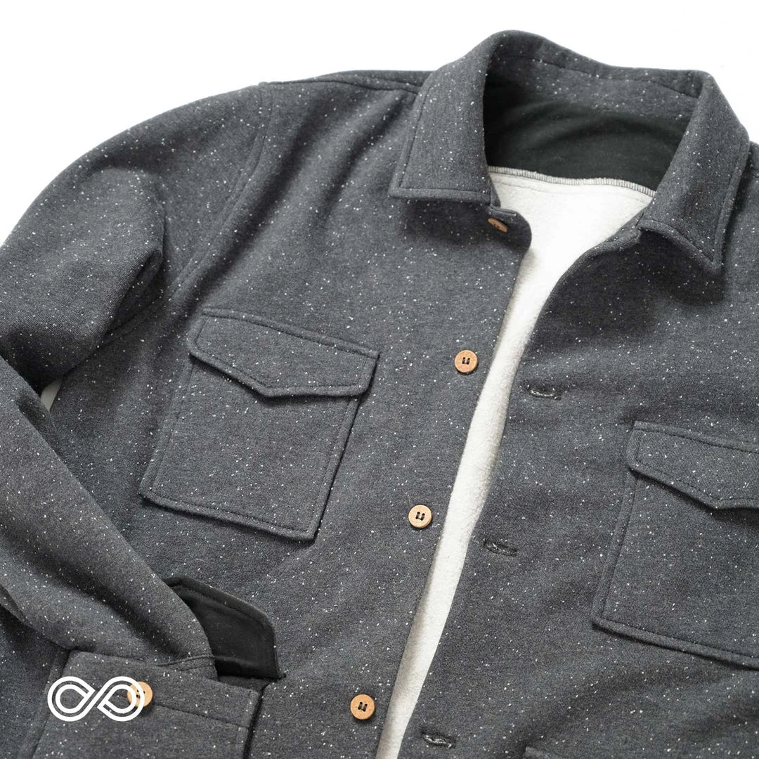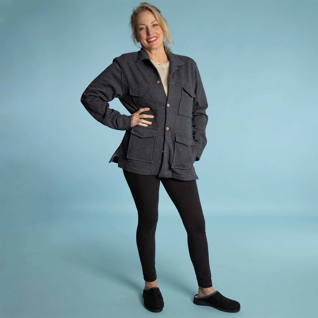 The Organic Cotton Fleece Button-Down Jacket is warm, light, cozy, & sustainable: made from our signature organic cotton fleece that is so soft you’ll want to keep it on all day. Wonderful for wearing year-round, especially if you live in brisk coastal regions. It’s breathable. Wear as a warm shirt, as a layer, or as a jacket.Â
