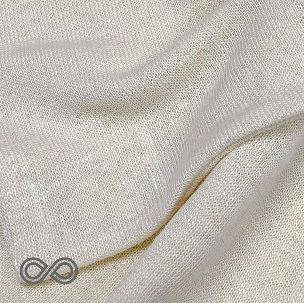 Fabric: 100% organic European hemp knit. Some of our older inventory is 42% hemp & 58% flax.