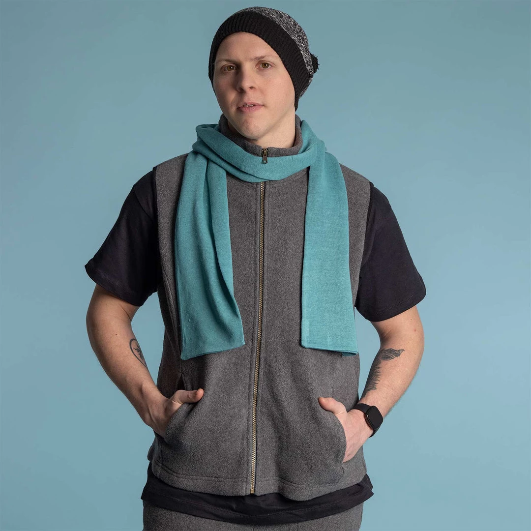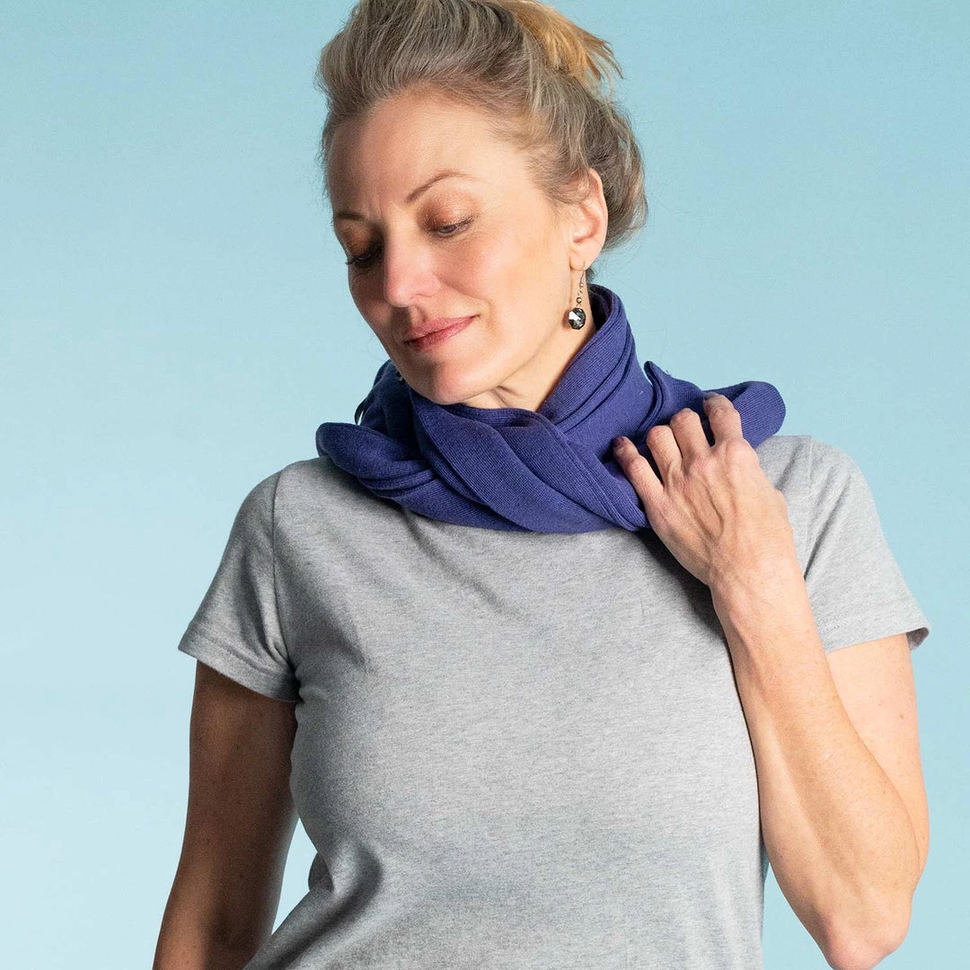 A cozy hemp scarf made with 2 layers of 100% organic hemp jersey knit. 7″ by 77″. Choice of many eco colors, including natural unbleached & dyed-free.