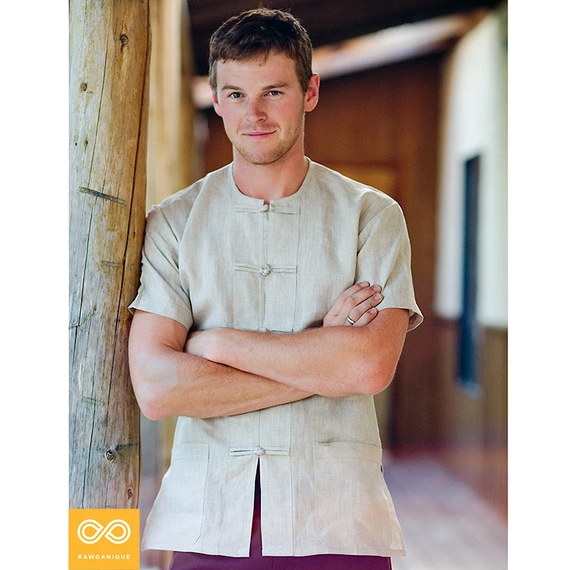 Of course, city people from all walks of life have long adopted this classic organic linen shirt for their own because the design is timeless and the cut is so cozy and comfortable. Also called Mo Hom or Maw Hawm Organic Linen Shirt. It’s great for casual or formal wearing. Perfect for theme weddings and stage plays, too.