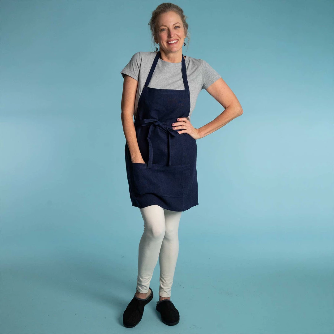 Our Classic 100% Organic Hemp Apron is cut in a shorter body style and features a fixed neckstrap, drawstrings in the back to accommodate virtually any waist size, and 2 front pockets. One size fits most.