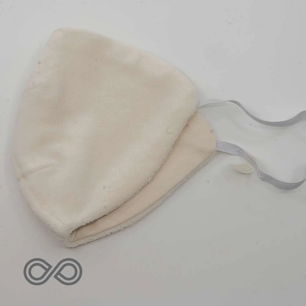 100% Organic Cotton Fleece & Jersey. 2-layer reversible. Easy on, off. Elastic band must be worn high behind the head for this style to work. Cut like the Vivaldi but with 1 elastic band. Organic cotton threads.Â