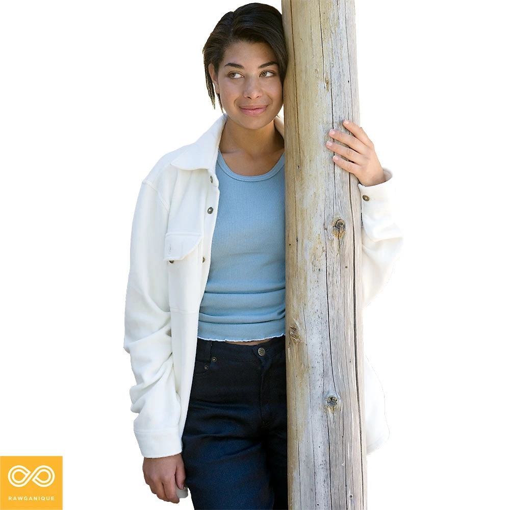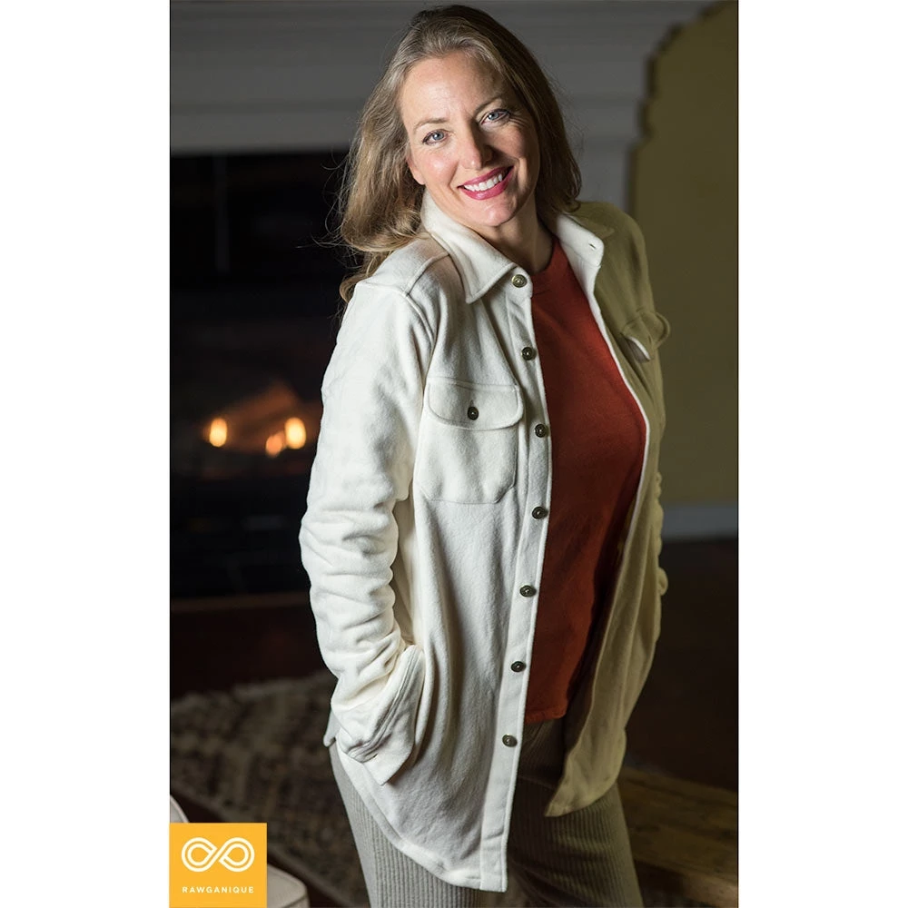 Our 100% Organic Cotton Fleece Button-Down Jacket is super warm, light, cozy, and sustainable: made from Rawganique’s signature (world’s first and only) double-sided 100% organic cotton fleece that is brushed on both sides for ultra softness. Wear it year-round, especially if you live in brisk coastal regions. It’s breathable. Wear as a warm shirt, as a layer, or as a jacket.