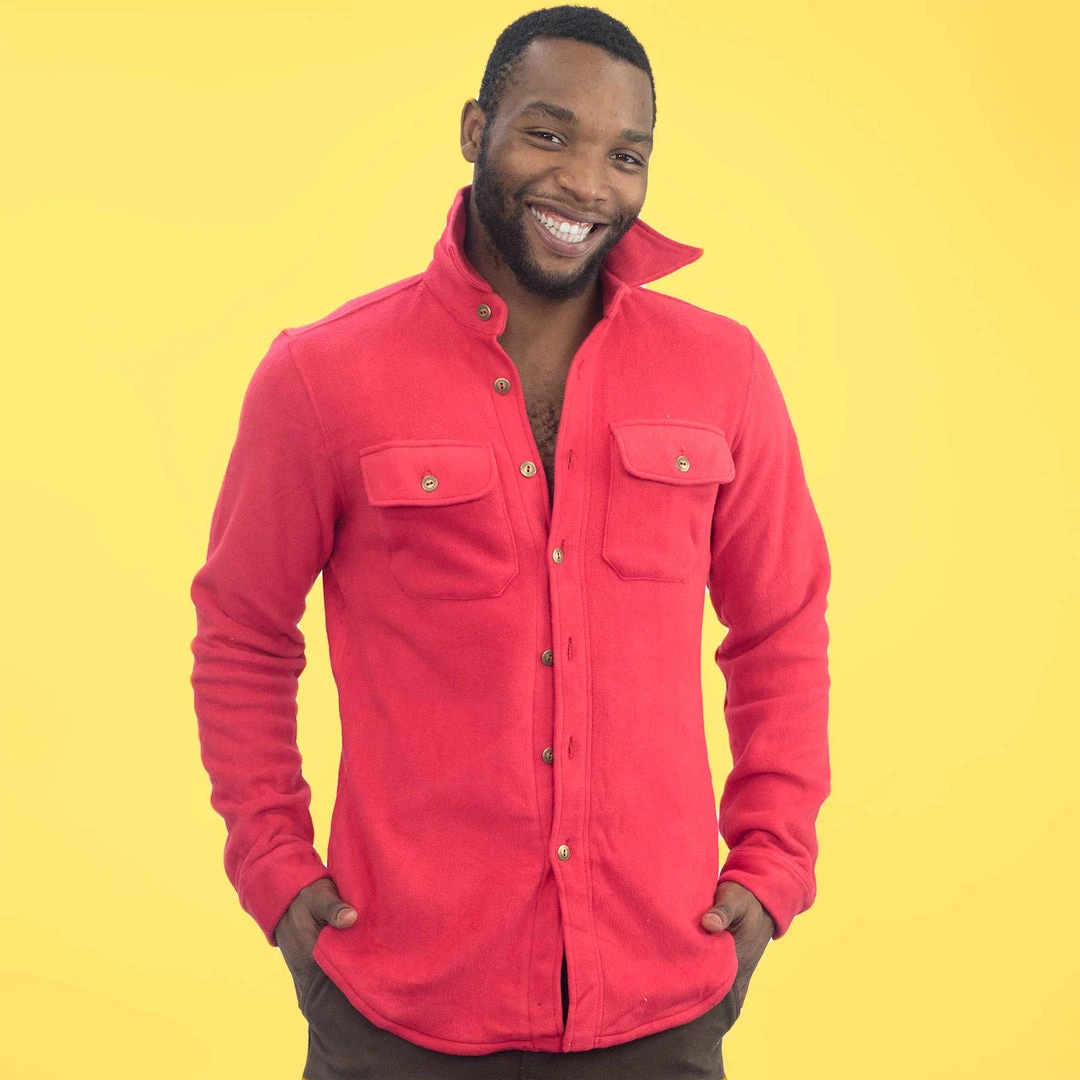100% organic cotton fleece overshirt jacket, brushed on both sides for ultra softness and warmth. With a hand-warming pocket on each side! Unisex XS – 3XL. Regular $139; Closeout Sale $109. Sale price reflects the fact that some buttons may have been sewn on improperly, resulting in some buttons coming off. Please inspect the buttons upon receipt and reinforce with needle and thread as needed.