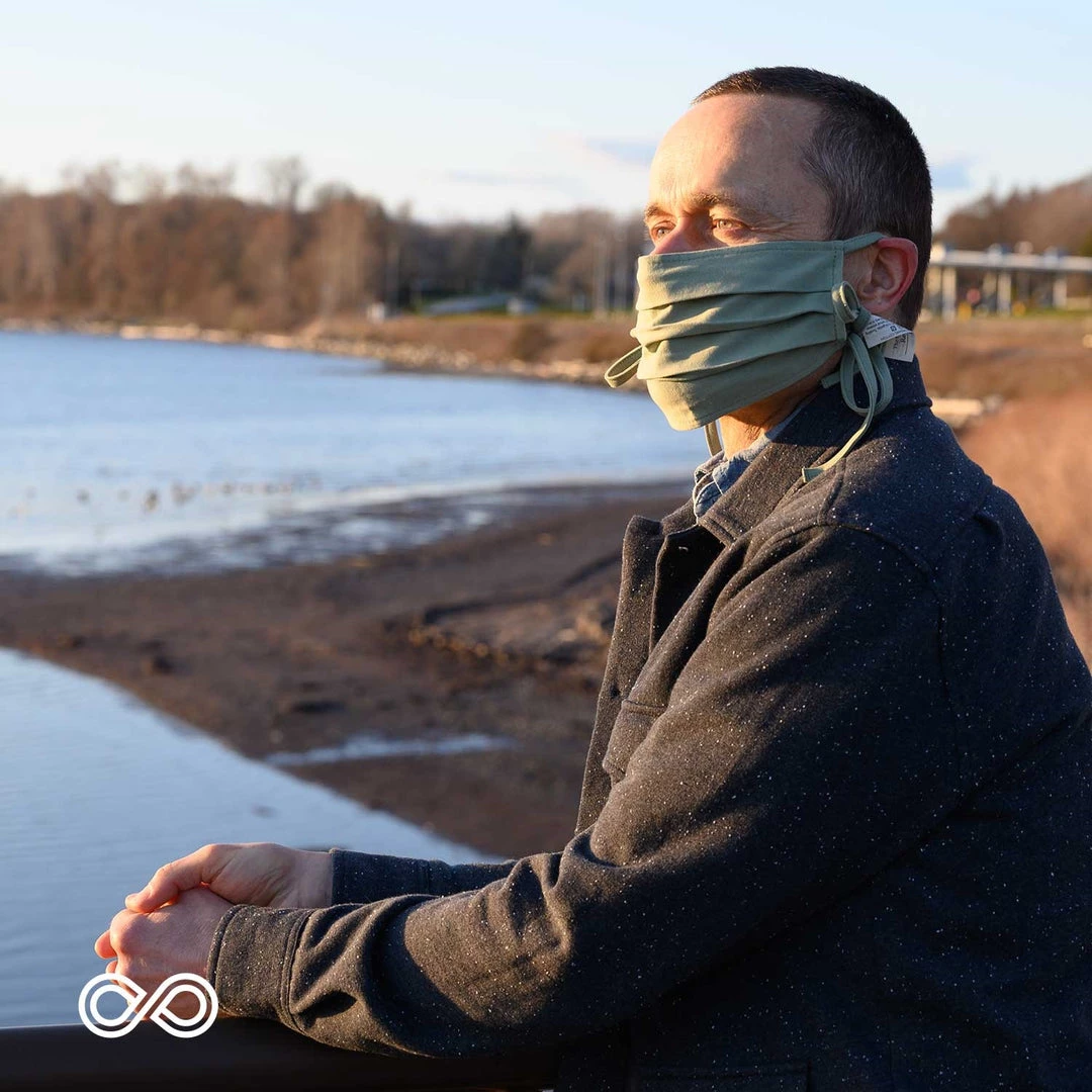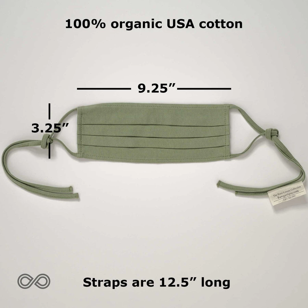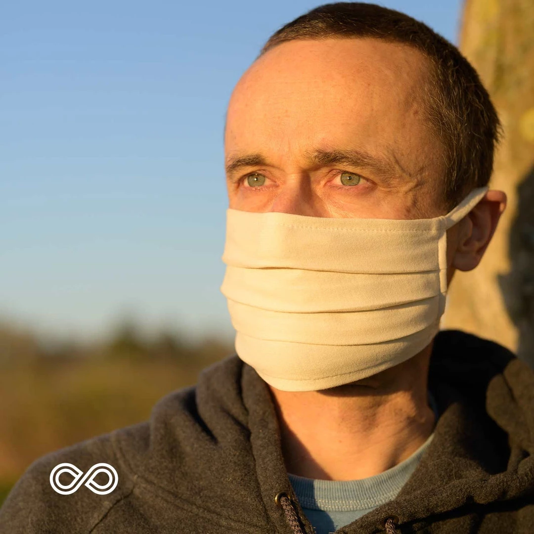 Super soft 100% organic cotton face covering. Organic cotton threads. Elastic-free. Adjustable. Safely protects against potential pathogens & allergens. No latex, elastic, plastic, polyester, or PVC. Many doctors have told us they wear our organic facemasks under medical masks to protect their skin and lungs from formaldehyde in the medical masks.