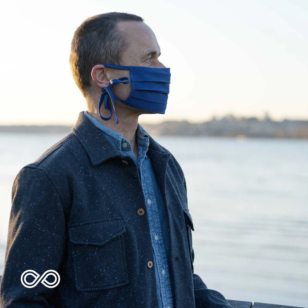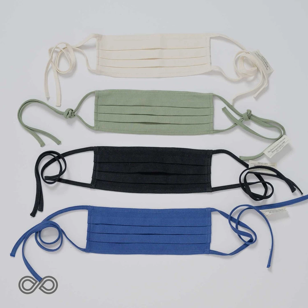 This hand-washable, reusable organic cotton mouth mask – courtesy mask can be fitted behind the ears or tied behind the head. It’s made from a soft & breathable 100% organic cotton jersey & sewn using organic cotton threads. This all-natural hypoallergenic face mask is completely chemical-free. No VOC, no bleach, no dye, no PVC, no plastic, no elastic, no Velcro, no GMO, no pesticides, no dioxin, no formaldehyde, no forever chemicals such as PFAS. Only natural fiber. As it should be, for your & our all safety. Natural is unbleached and undyed. The organic cotton masks in color are dyed using non-toxic biodegradable fiber-reactive dyes.