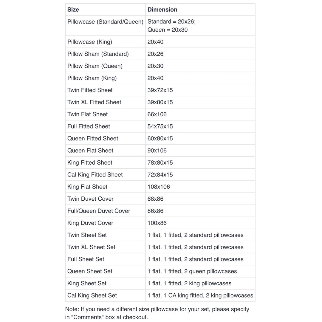– Twin XL: 1 Twin Flat, 1 Twin XL Fitted, 2 Standard Pillow Cases $420