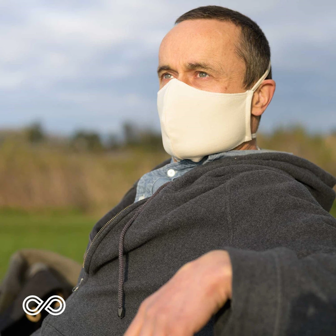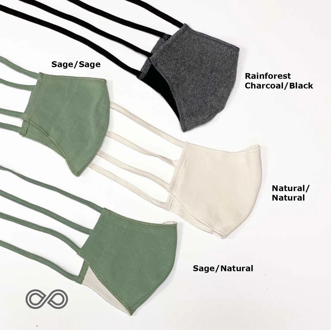 This two-layer elastic-free 100% organic cotton face covering is created by popular request and feedback from our customers who work in healthcare and grocery stores and food delivery service – the people who face the public because of their essential jobs. They have told us that they need 2 or 3 layers to feel safe in this Coronavirus Pandemic, so we have developed a new style of 100% organic cotton face mouth mask that has two tightly knitted and very soft layers for all-day wearing comfort. It’s also completely chemical-free, designed especially for those who are allergic to elastic, latex, nylon, chemical dyes, bleaches and Spandex.