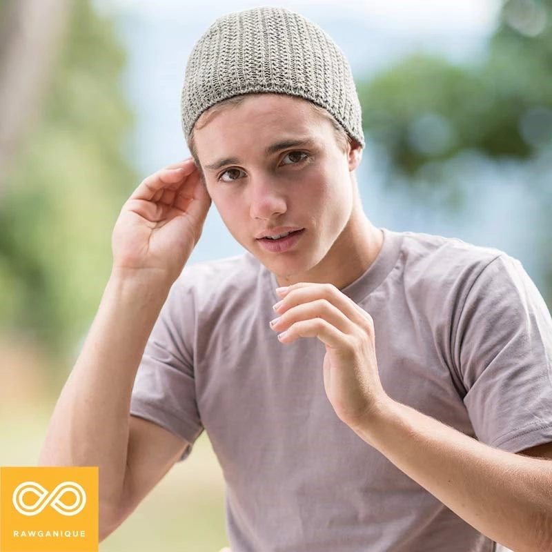 Ethically made, sustainable, vegan, ec-friendly organic flax linen beanie knit hat at its purest.