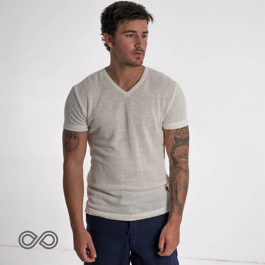 The Tivoli Slim-Fit V-neck Tissue-weight 100% Hemp T-shirt is an essential in any eco-organic wardrobe!