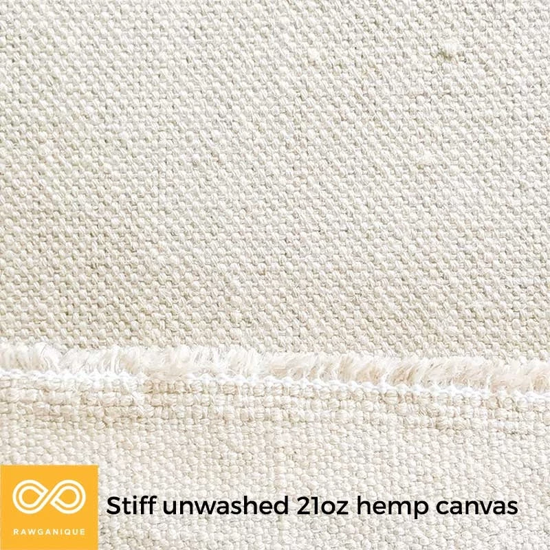 Fiber: 100% organic European hemp 21oz stiff unwashed canvas