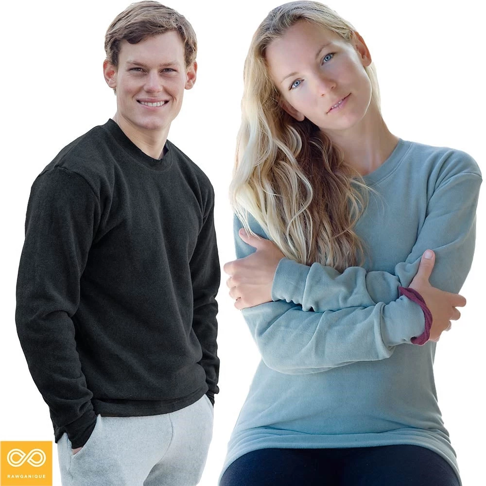 This organic sweatshirt is a truly rare & unique product. It’s one of our most enduring products since 1997. Customers literally come back for a dozen after first contact with our pure organic cotton fleece sweatshirt which many call love at first sight. Sweatshop-free. Hand-crafted at the Rawganique Atelier in Europe. Chemical-free.