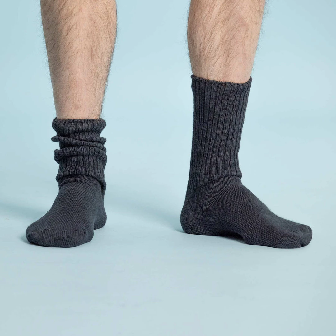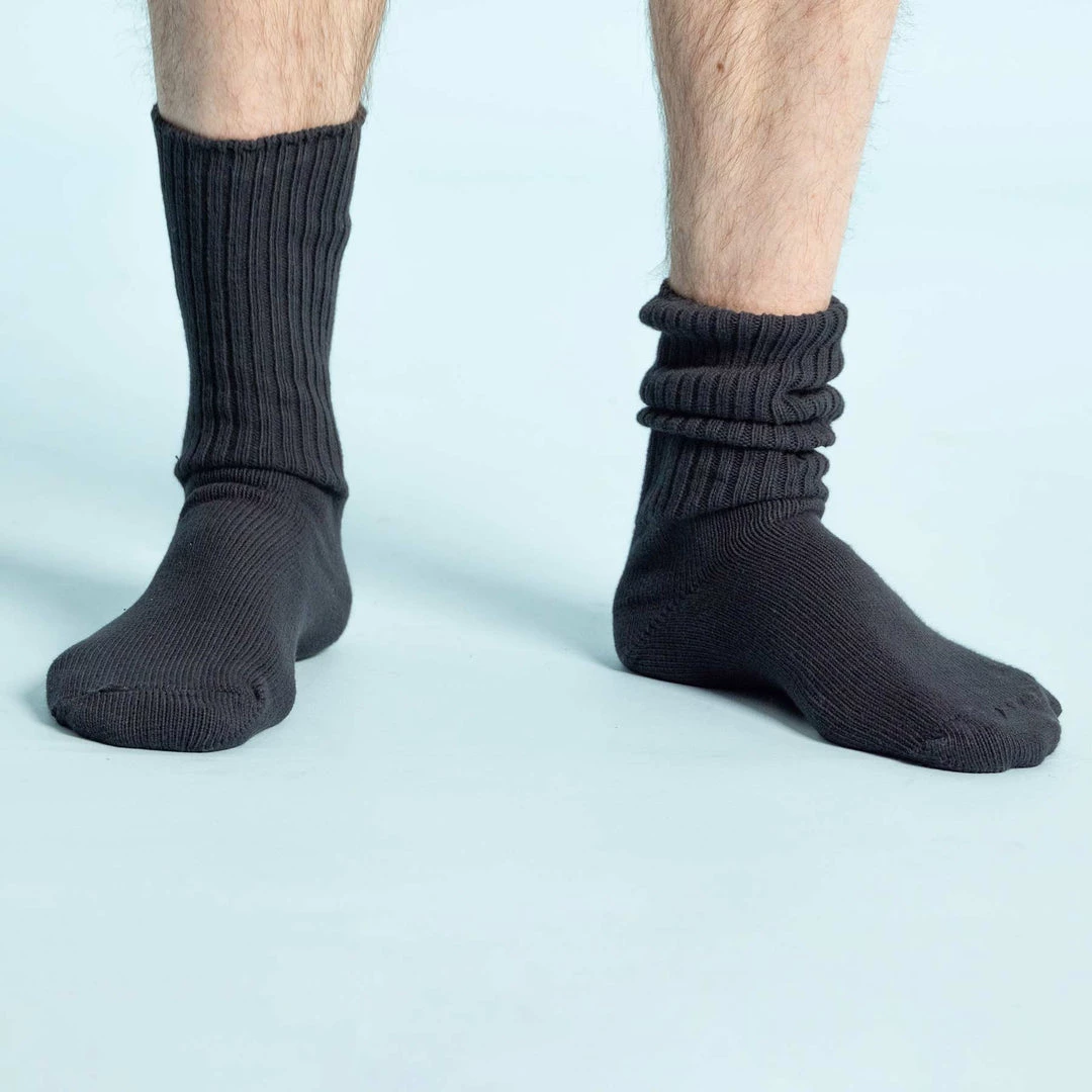 Hypoallergenic 99.8% organic cotton socks made in USA from 100% organic USA cotton. S – XL. Soft, breathable, non-confining. Natural or Black.
